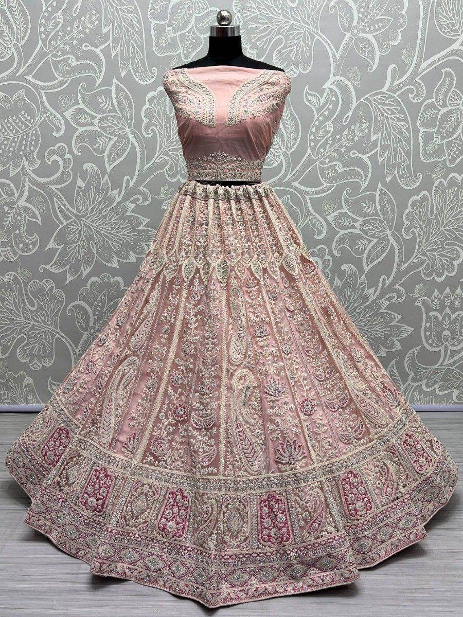 Introducing the adorable peach embroidered net engagements wear lehenga choli, a stunning and elegant ensemble perfect for receptions and engagements. Made from high-quality peach-colored net material, this lehenga features intricate fancy dori work, embroidery work, multi-thread work, and attractive diamond work.