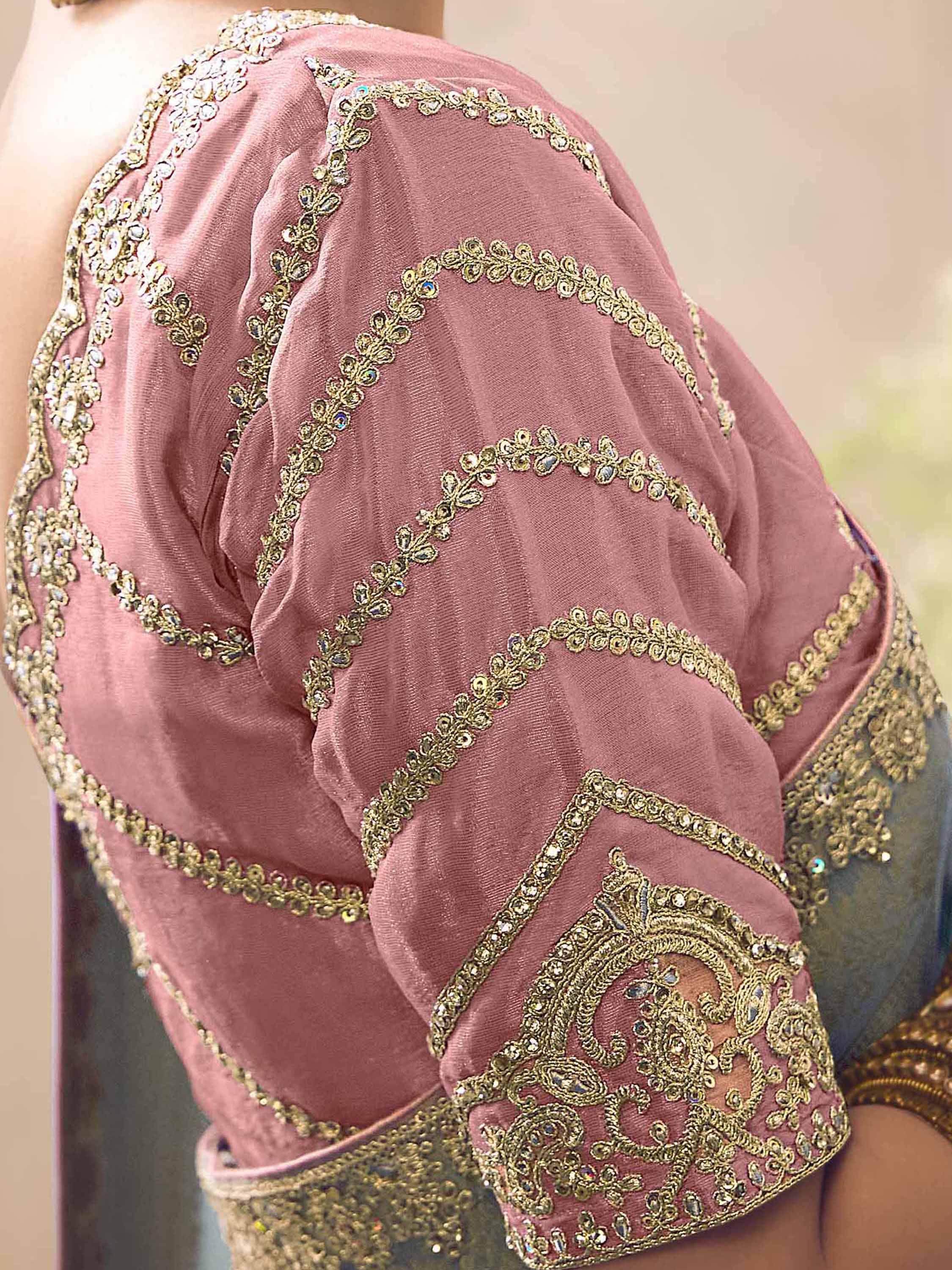 The baby pink silk blouse complements the saree beautifully, creating a cohesive and elegant look. With its stunning design, high-quality fabric, and intricate details, this saree is sure to turn heads wherever you go.