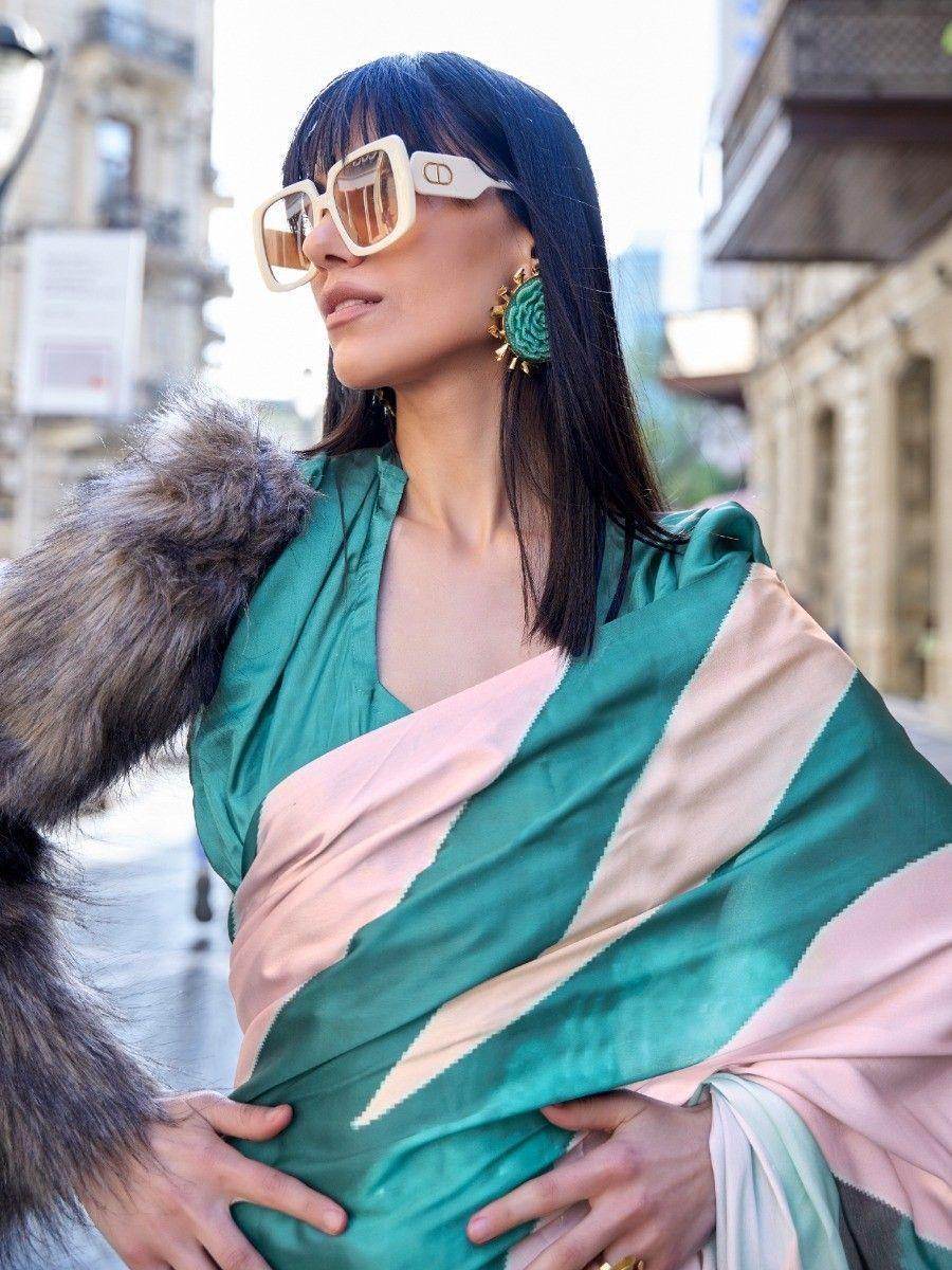 Introducing our stunning alluring multi-color digital print satin party wear saree with blouse, a true masterpiece that will elevate your style and make you the center of attention on any occasion. Made with high-quality satin material, this saree features a beautiful digital print work in multiple colors, creating a mesmerizing and eye-catching design.