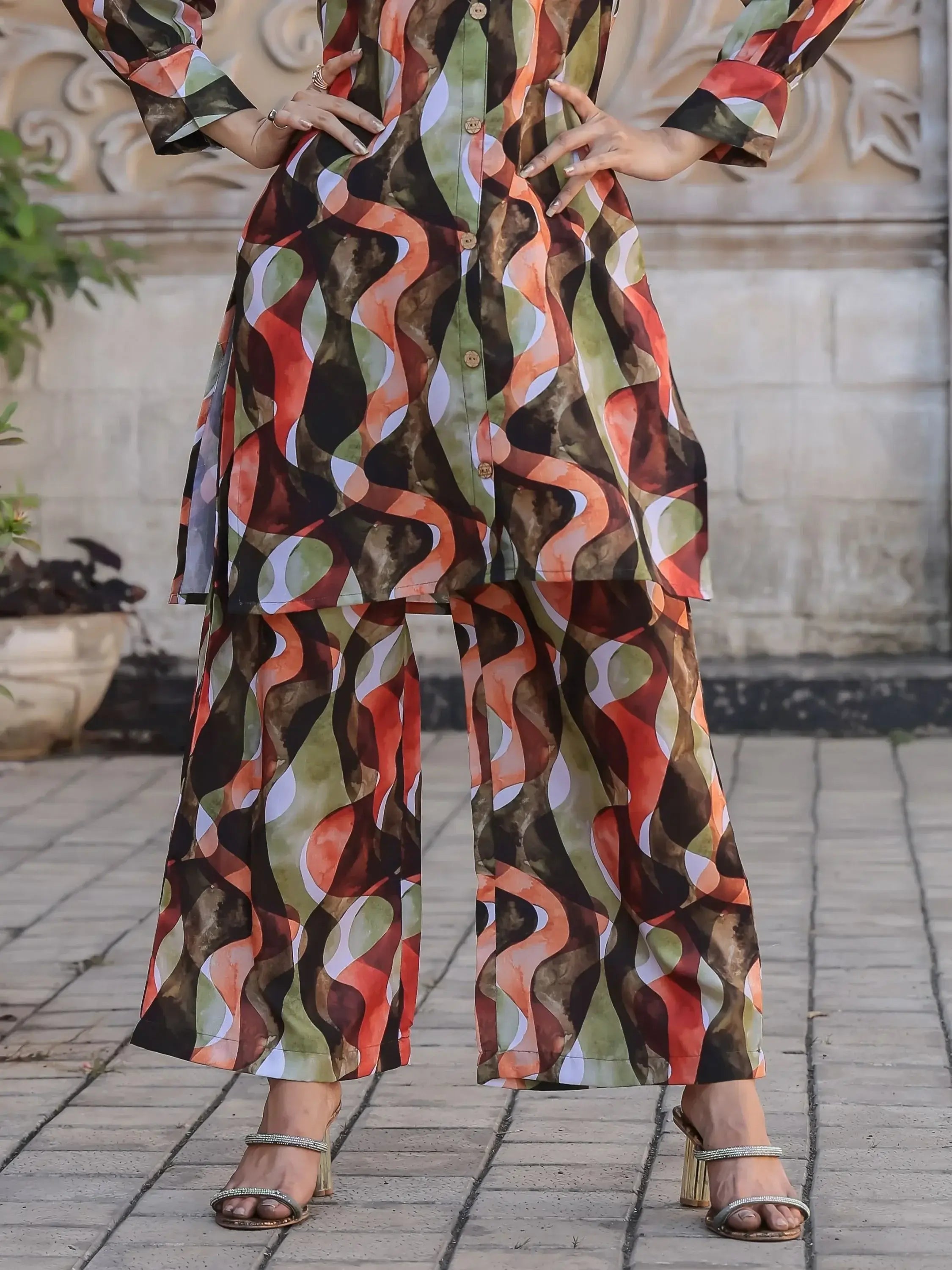 Wearing this multi-color co-ord top palazzo set allows you to express your unique sense of style and stand out from the crowd. Add some accessories to elevate your look and make a lasting impression at any event or gathering. Whether you're attending a festival or going out for a special occasion, this set is sure to turn heads and make you feel confident and fabulous.