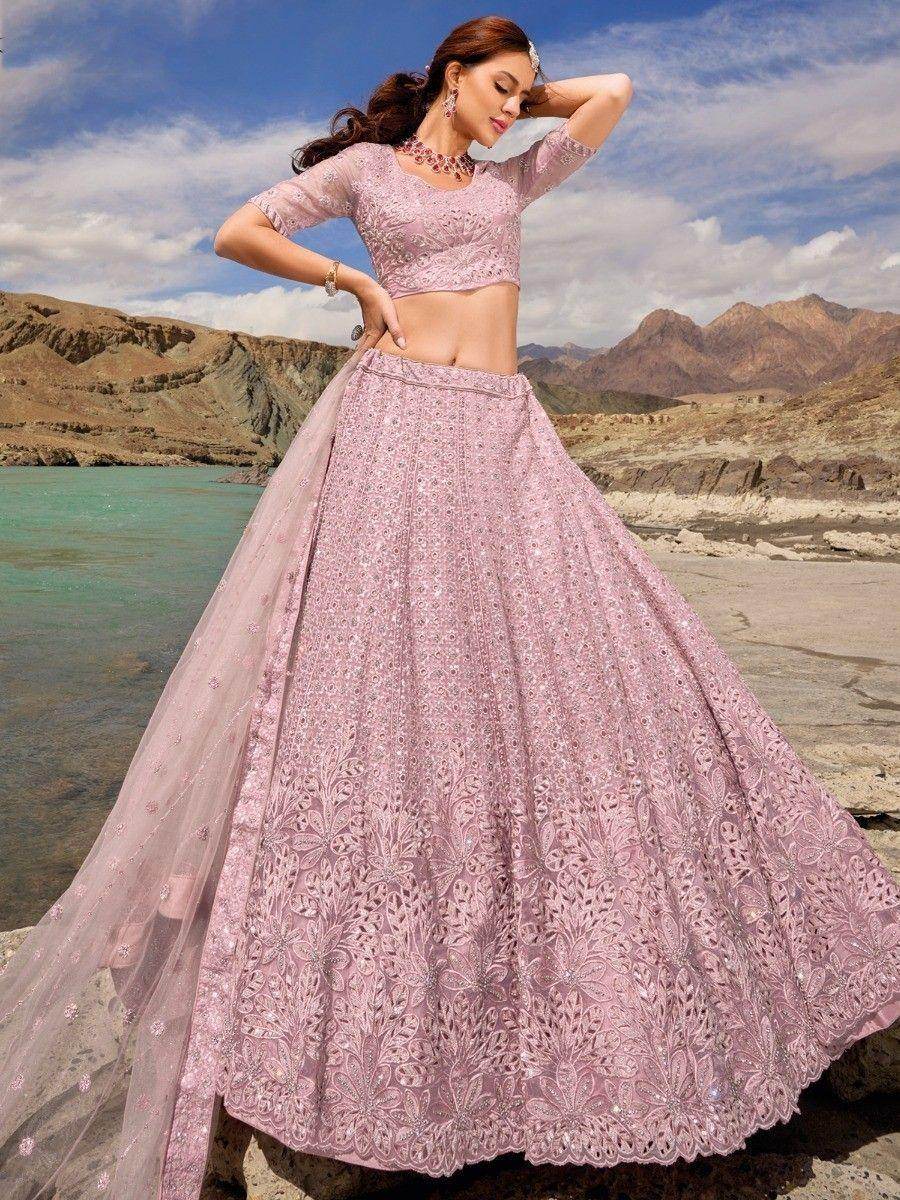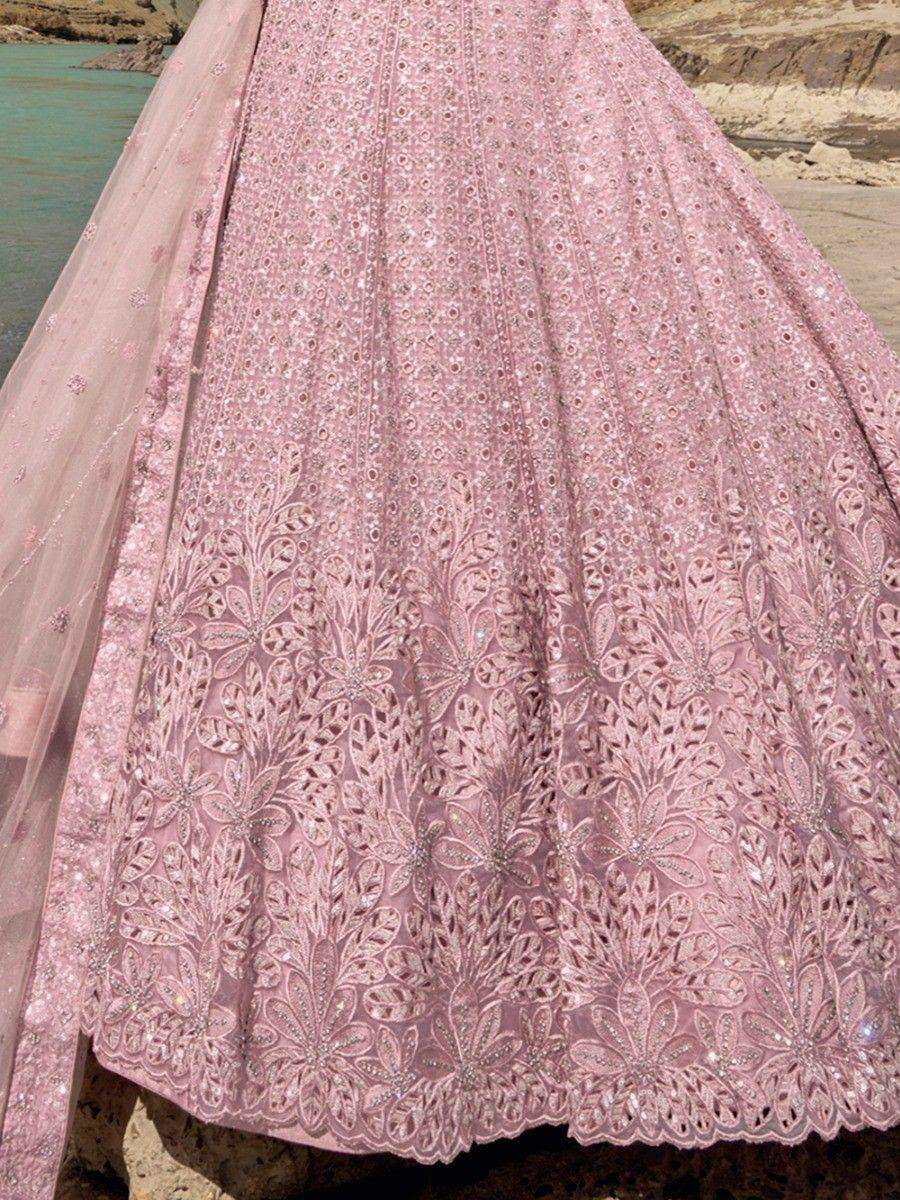 You can never go wrong with a pink-colored outfit. Introducing our alluring pink sequins organza designer lehenga choli with dupatta, a stunning ensemble perfect for weddings, functions, and other special occasions. This exquisite lehenga choli set features intricate sequin work, mirror work, and zarkan work, all beautifully crafted onto a pink color organza material.