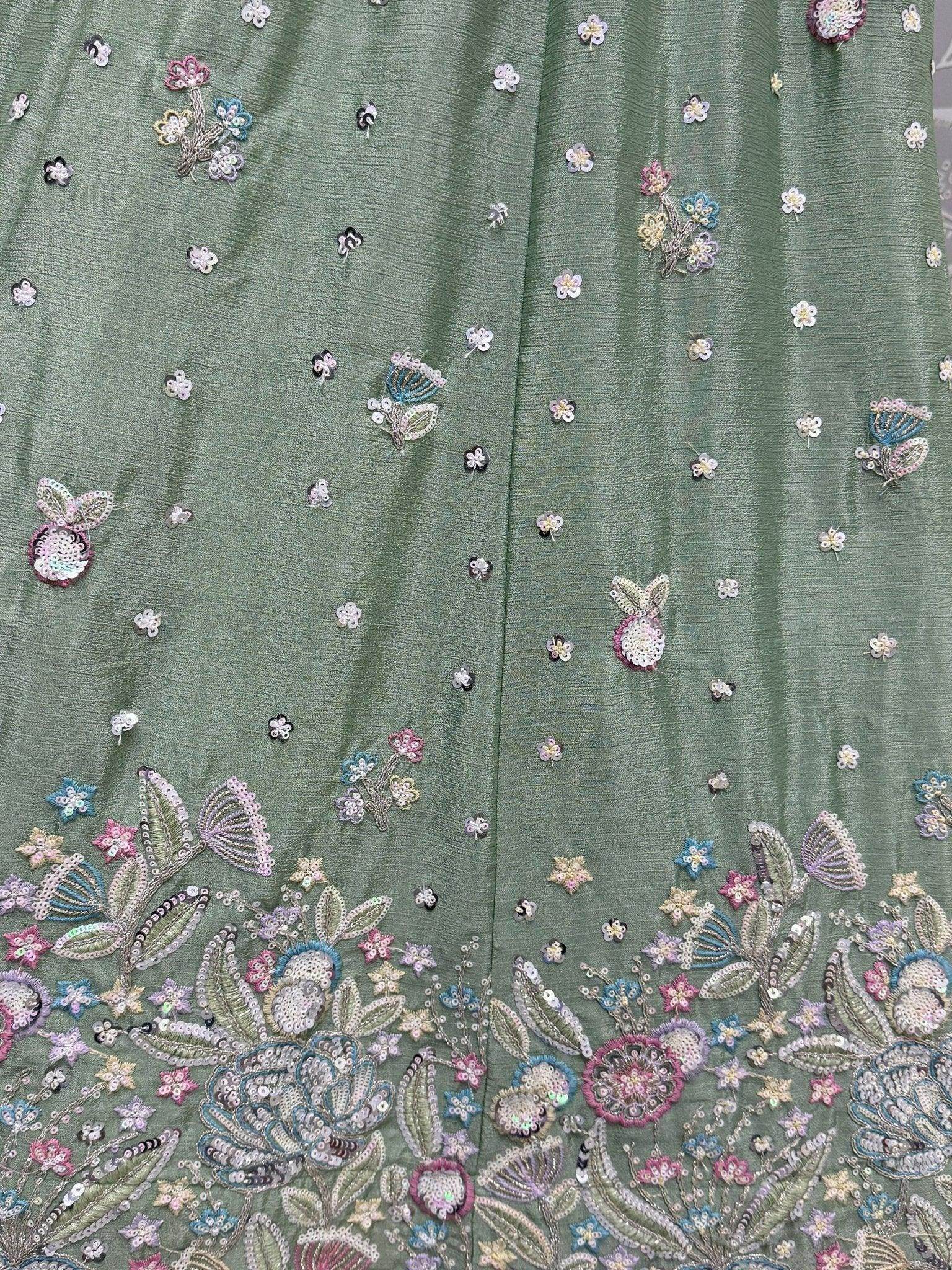 This alluring pista green sequin chinon wedding lehenga choli with dupatta includes its high-quality chinon fabric, customizable fit, and exquisite work details. The intricate sequin and thread embroidery showcase fine craftsmanship and attention to detail, ensuring you look and feel beautiful on your special day.
