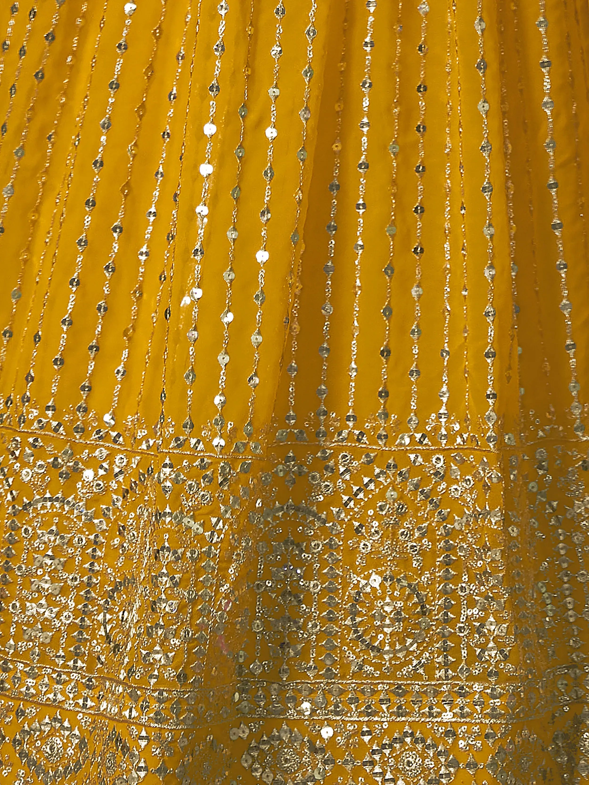 The alluring yellow sequins georgette haldi wear lehenga choli with dupatta is crafted in India, known for its rich heritage and skilled craftsmanship. This product showcases the artistry and attention to detail that Indian designers are renowned for, delivering a garment of exceptional quality and beauty.