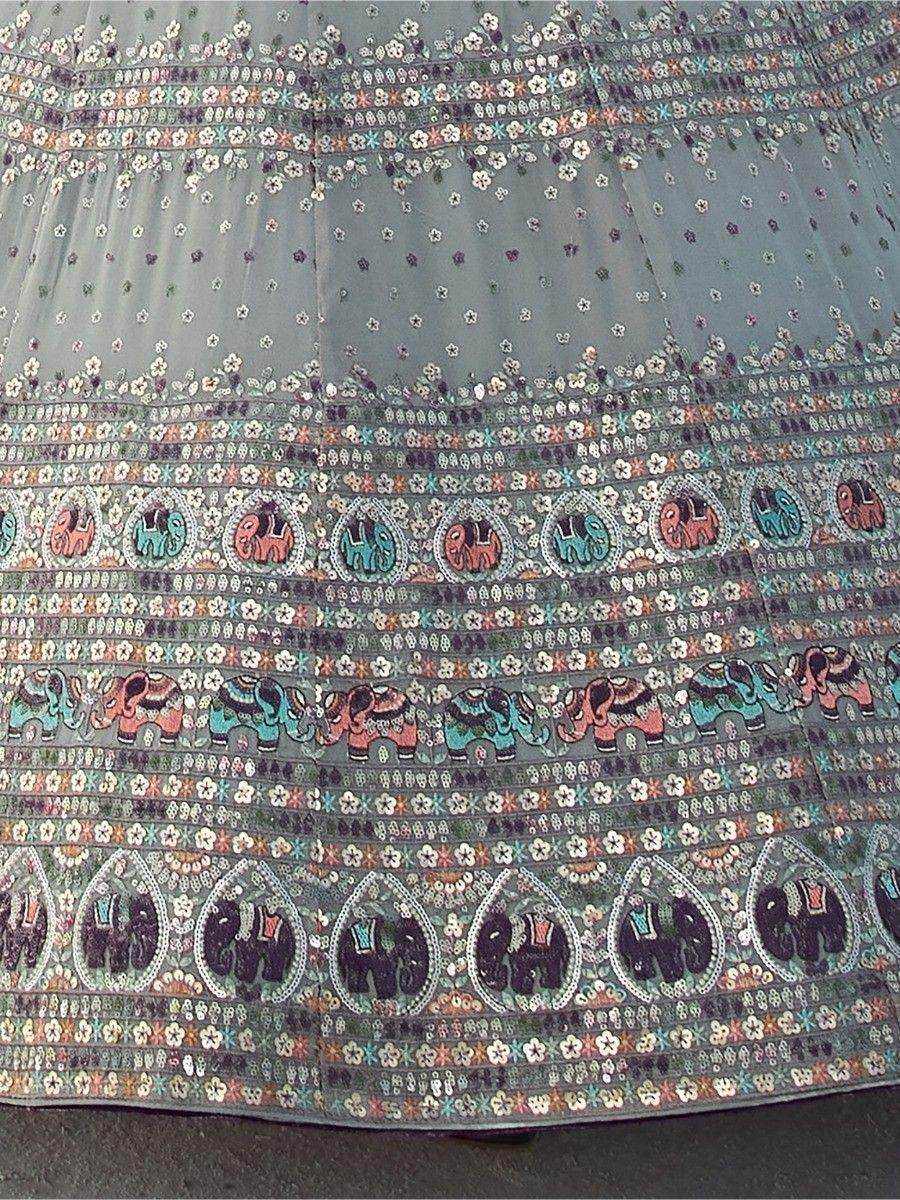 Our amazing grey sequins georgette wedding wear lehenga choli is not limited to just weddings. It is versatile enough to be worn for various functions such as receptions, engagements, and other special occasions. With its modern silhouette and impeccable detailing, it is sure to make heads turn wherever you go.