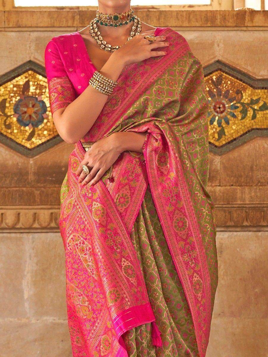 The amazing olive green weaving silk festival wear saree with a blouse is not only a fashion statement but also a symbol of tradition and cultural heritage. It embodies the beauty and grace of Indian ethnic wear. This saree is designed for women who appreciate fine craftsmanship and want to stand out from the crowd.