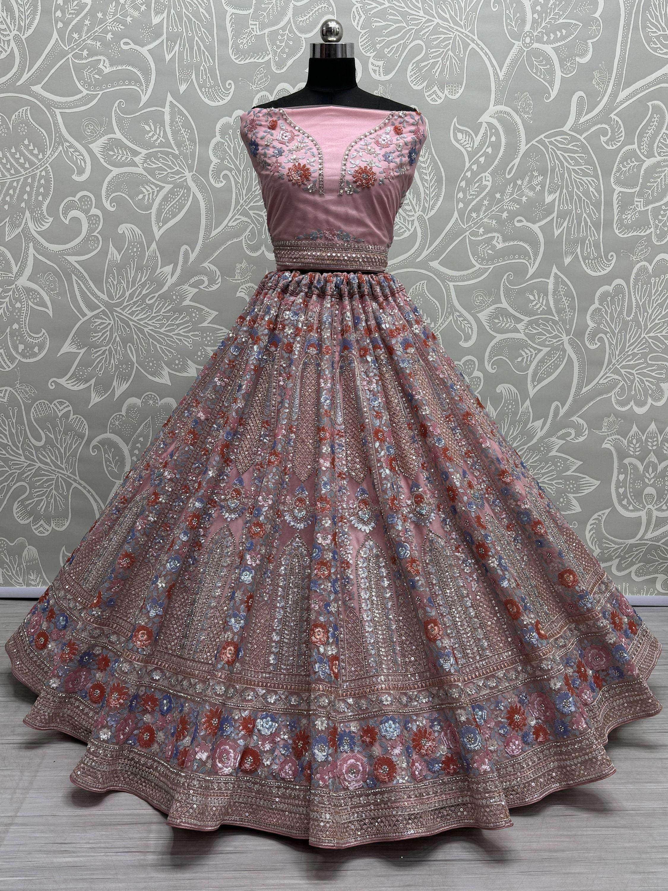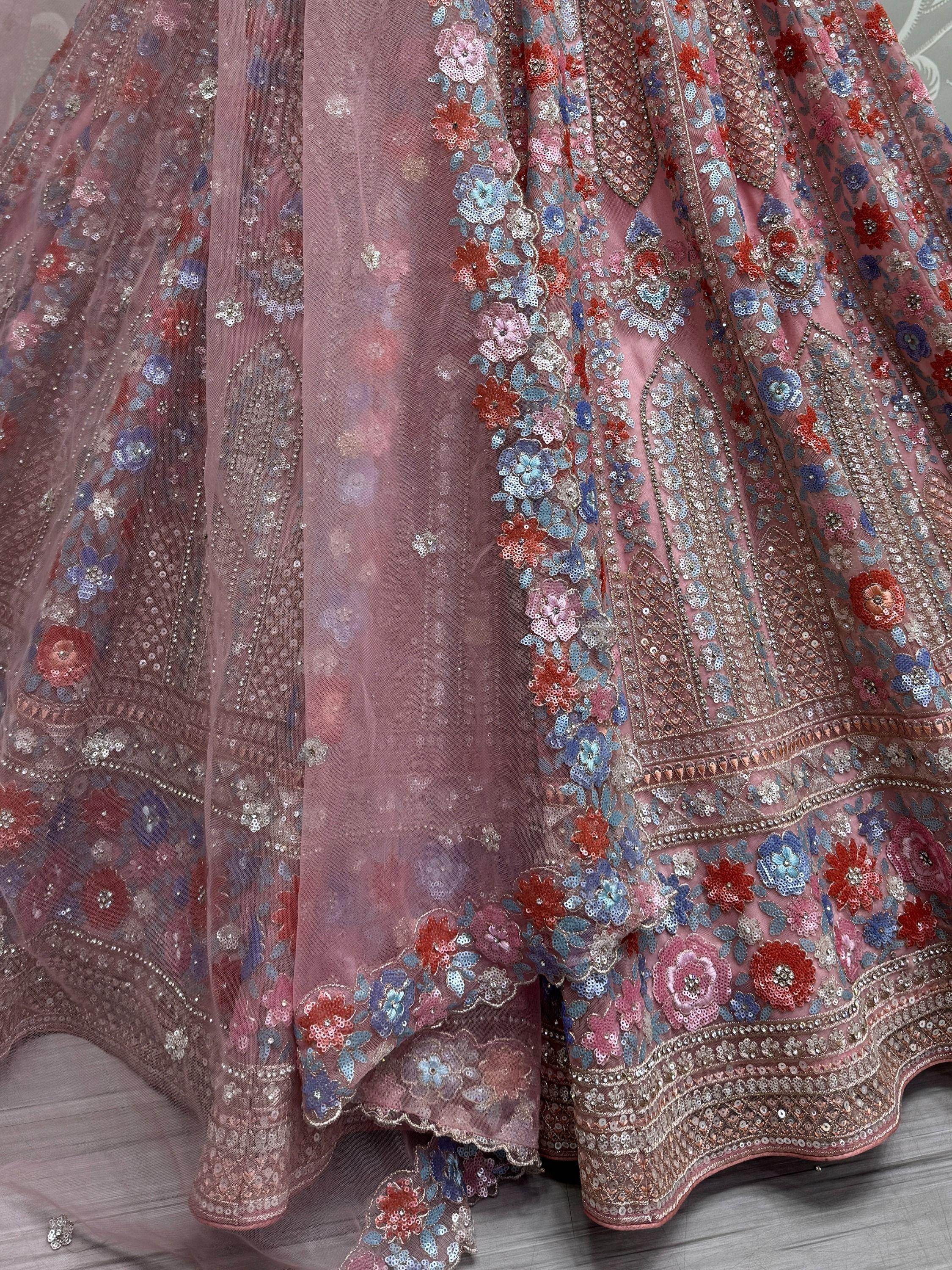 Introducing our stunning "amazing pink sequins net bridesmaid lehenga choli with dupatta" - a mesmerizing ensemble that is bound to make you the center of attention at any event or occasion. This gorgeous pink lehenga features intricate thread work, sequin work, zari embroidered work, zircon work, and diamond work, all meticulously handcrafted to perfection.