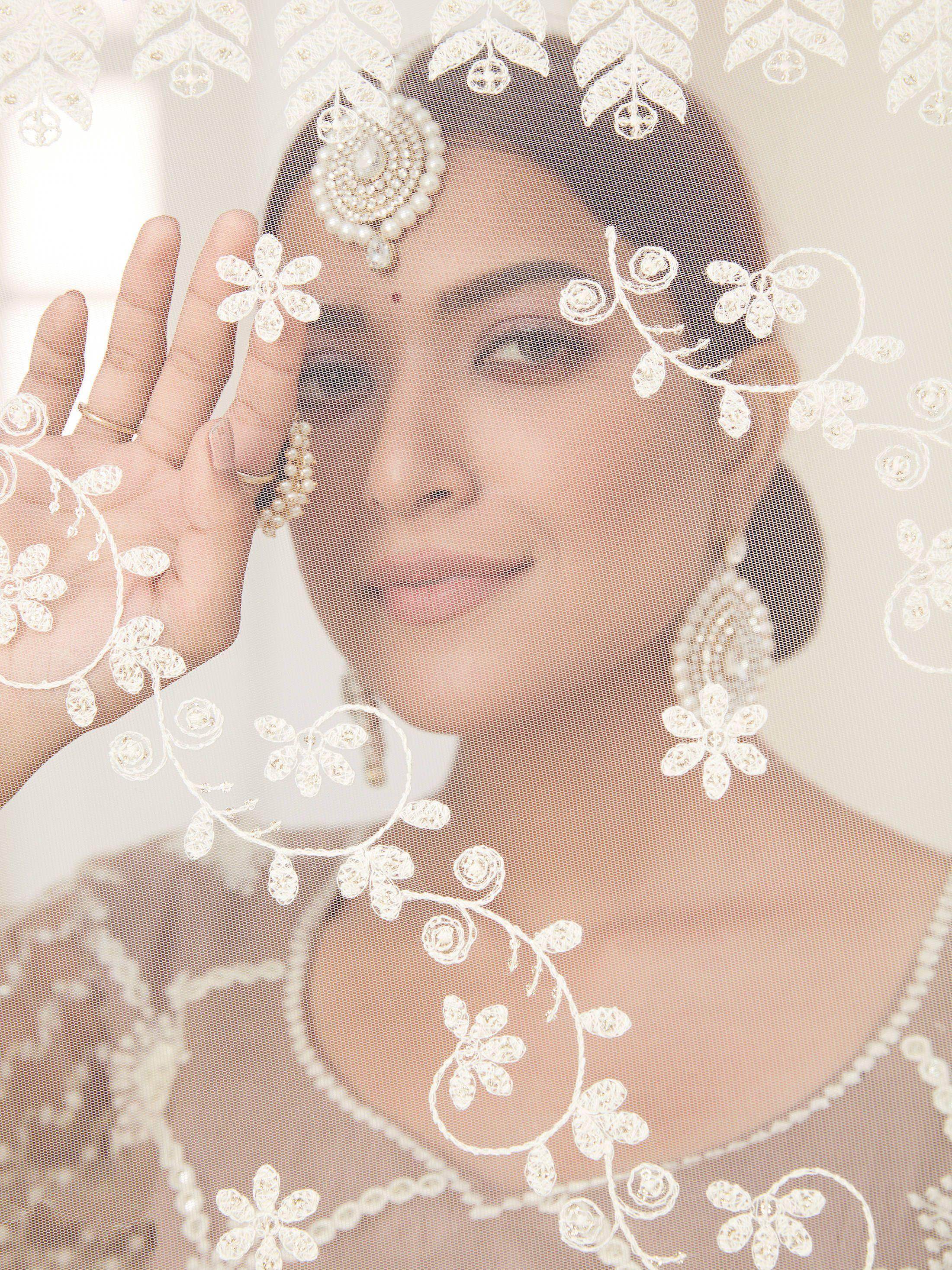 This lehenga comes with a similar color choli in heavy net with art silk inner material and white color net dupatta with cotton thread lacework.