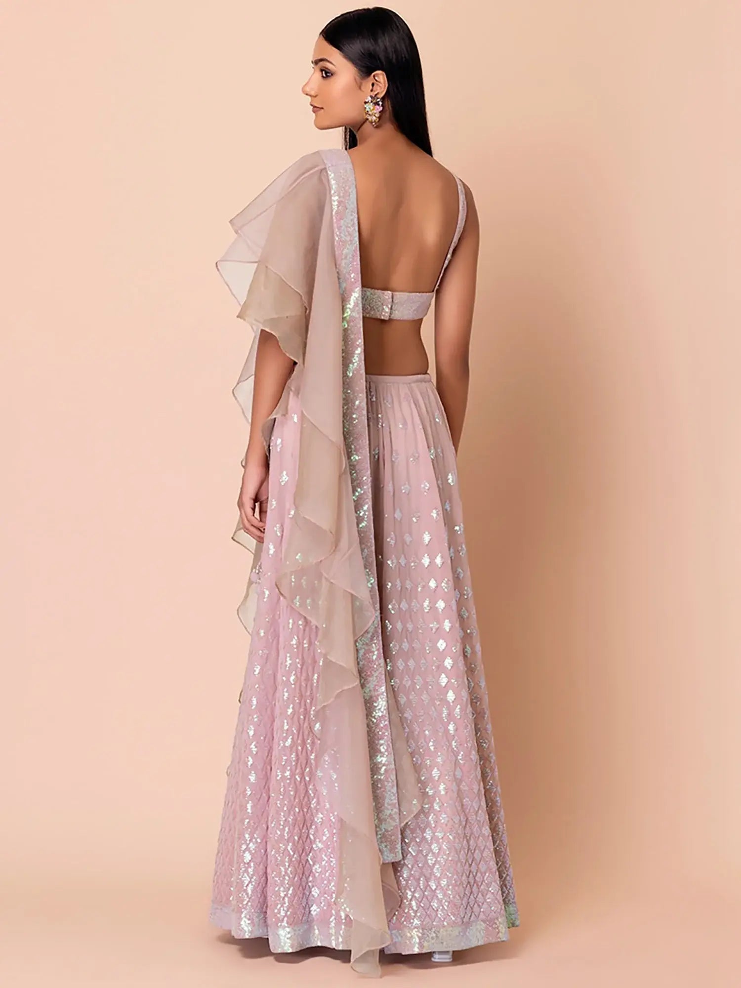 Introducing the astonishing pink embroidered georgette party wear lehenga choli, a stunning and elegant outfit perfect for engagements, receptions, and parties. Crafted from high-quality georgette material, this lehenga features intricate sequin and embroidery work, adding a touch of sparkle and glamour.
