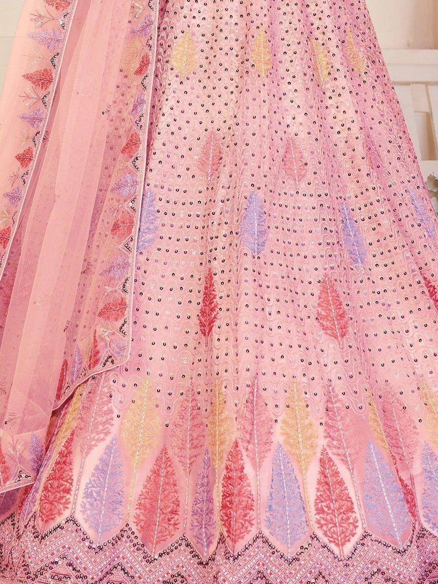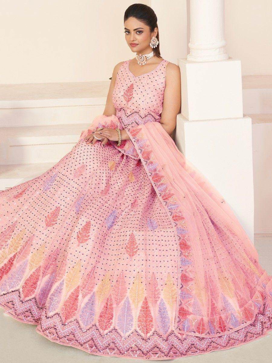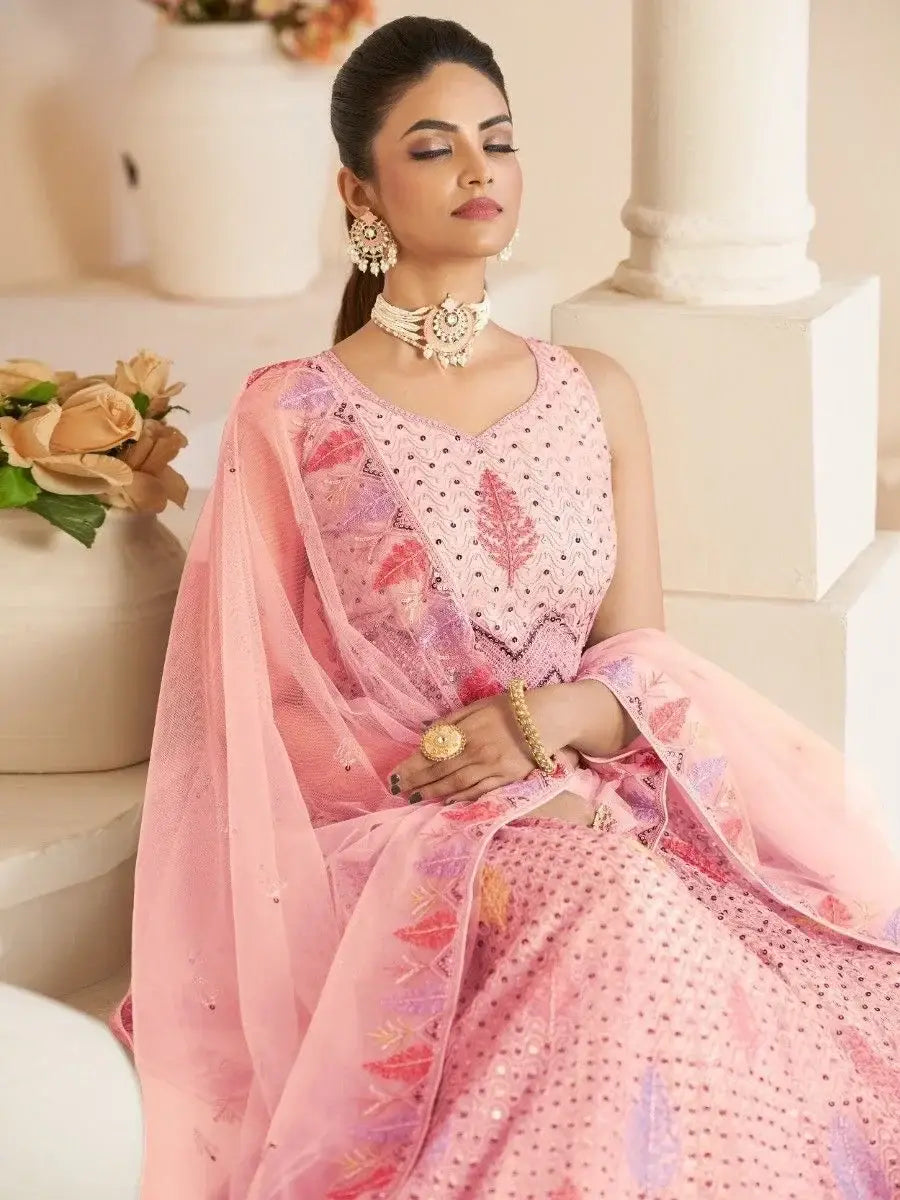 Introducing the astonishing pink sequins net engagement wear lehenga choli from Ethnic Plus! This stunning pink lehenga choli is the perfect choice for weddings, receptions, or any special occasion. Made with high-quality net material, it features intricate sequin and threadwork that adds a touch of glamour to your look.