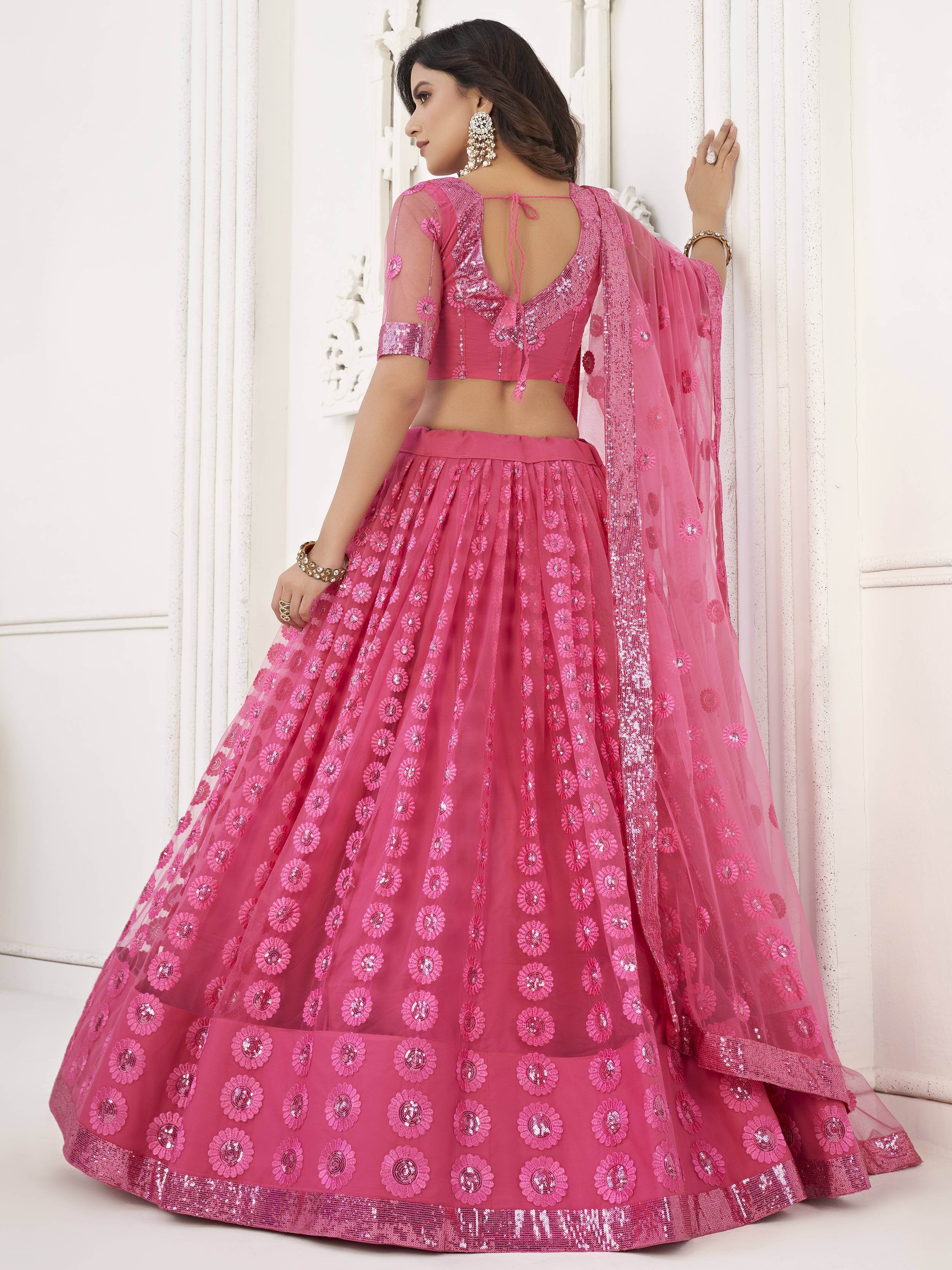 Introducing our awe-inspiring pink sequins net reception wear lehenga choli, a stunning masterpiece that is sure to make you the center of attention at any party, wedding, reception, or special occasion. This exquisite lehenga choli set is designed with utmost care and attention to detail, ensuring that you look and feel like a true princess.
