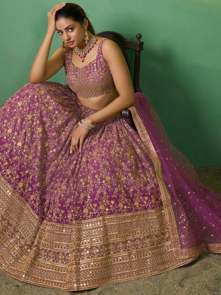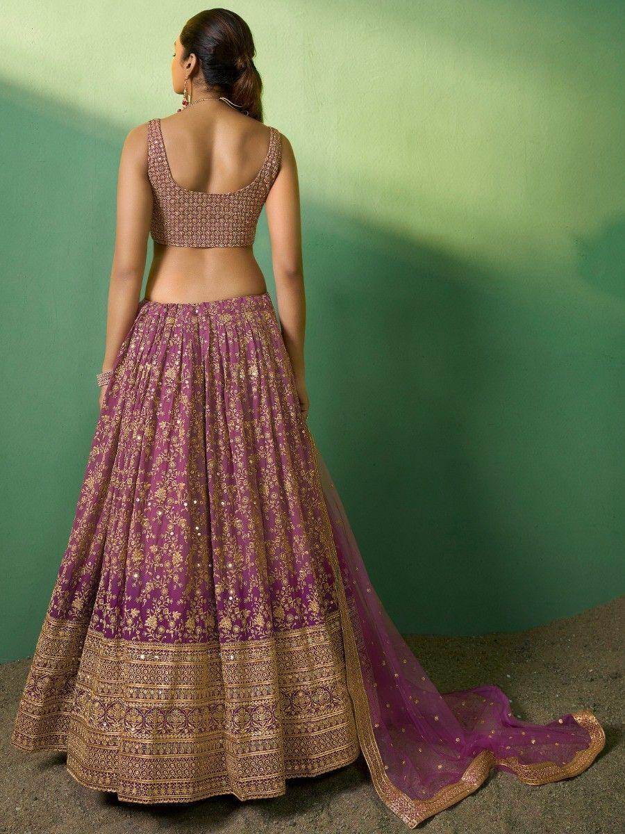 The astonishing purple embroidered georgette reception wear lehenga choli is a show-stopping ensemble that combines beauty, elegance, and versatility. Its stunning purple color, sequin, and embroidery work, and high-quality georgette fabric make it a perfect choice for weddings, receptions, and engagements.