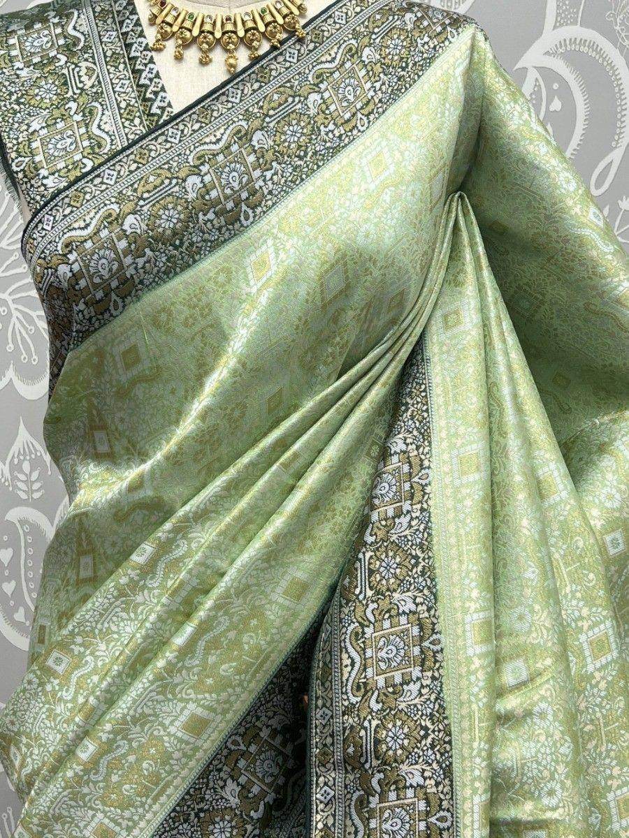 Our sea green zari weaving kanjivaram silk traditional saree is designed to provide you with the best fit and comfort. It comes with a similar color kanjivaram silk fabric blouse that features zari weaving work, completing the ensemble perfectly. This sea green saree is 5.50 meters long and comes with fully unstitched blouse material(0.90 meter).