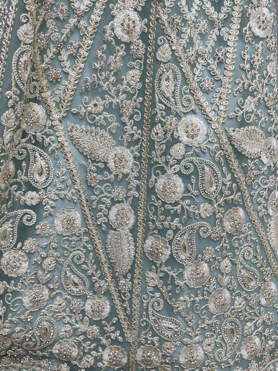 Pista Green Dori Thread Embroidered Net Wedding Lehenga Choli
