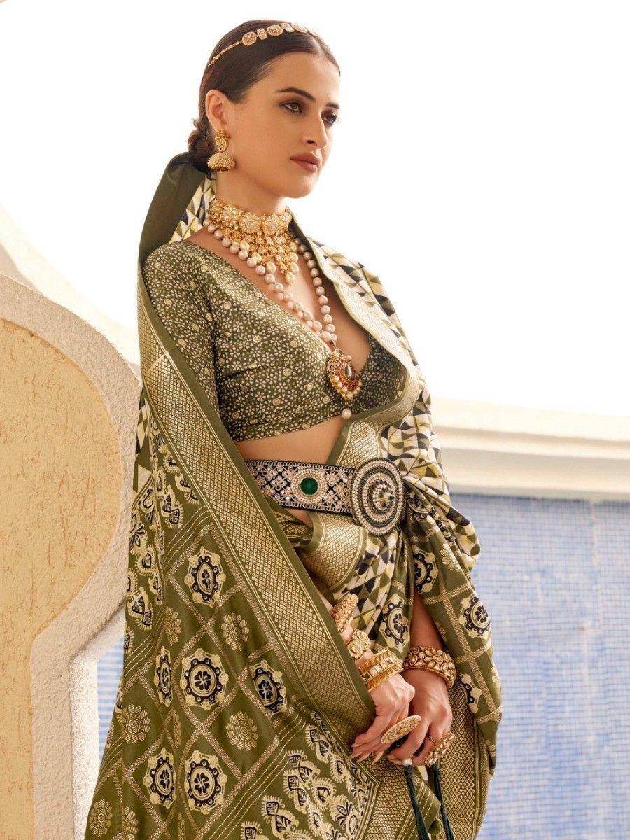 Introducing the "awesome green digital printed silk traditional saree with blouse" from Ethnic Plus. This stunning green silk saree is designed to captivate your senses and make you the center of attention on any occasion. Whether it's a wedding, reception, festival, or any other special event, this saree will effortlessly elevate your style and leave a lasting impression.