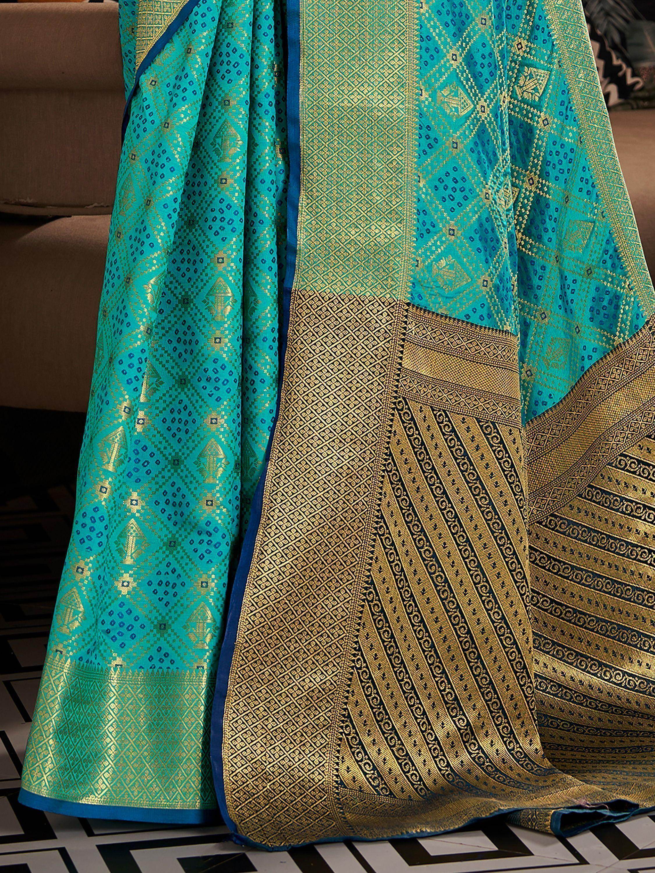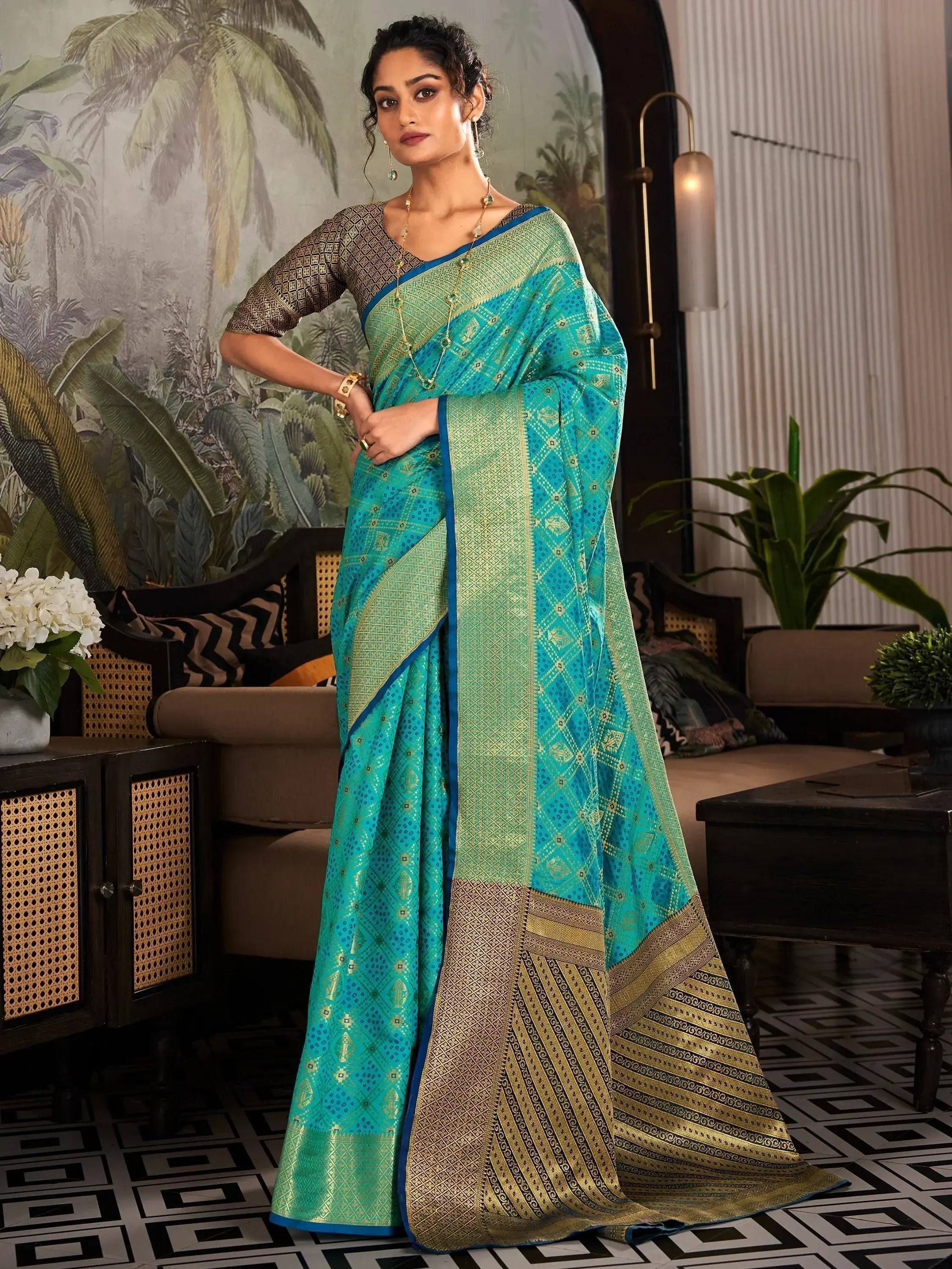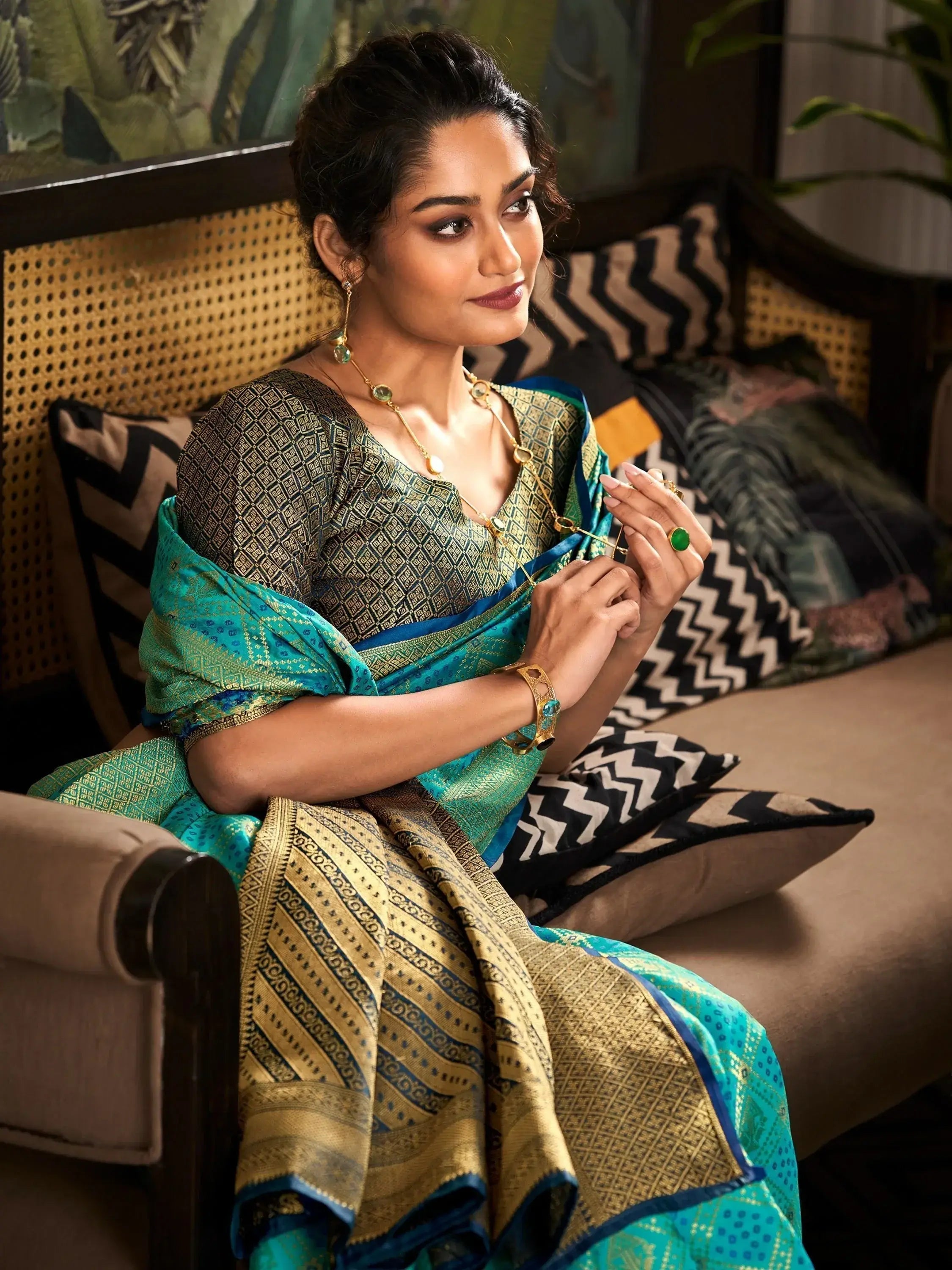 Many popular designers are choosing silk sarees with a touch of modern elegance, and this sky-blue color saree with zari weaving work is a perfect example of traditional beauty meeting contemporary sophistication.