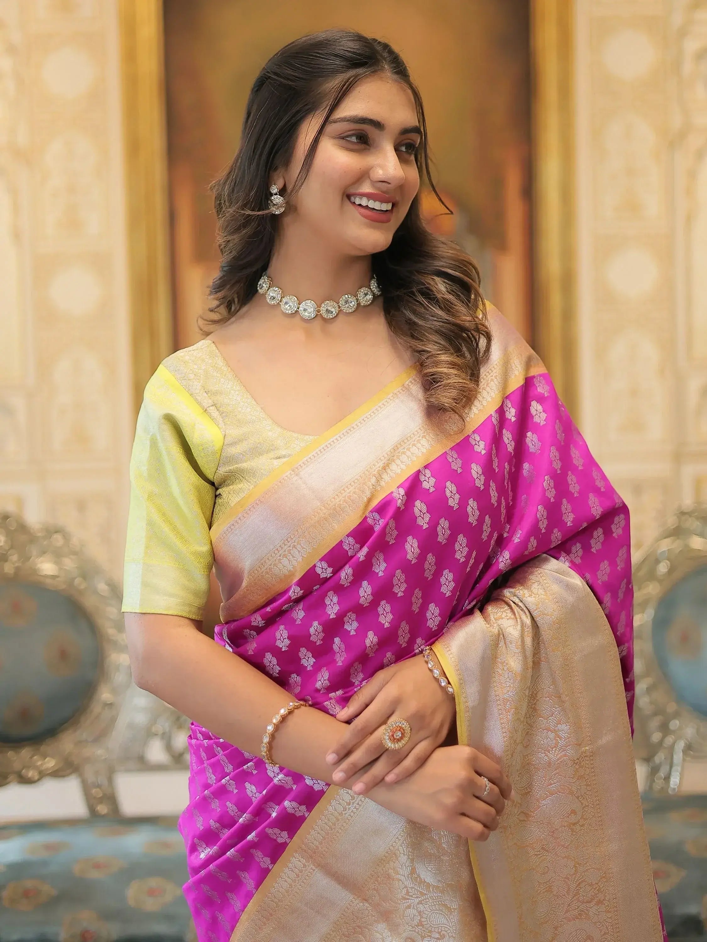 This saree includes its stunning zari weaving work, which adds a subtle shimmer to the saree, making it stand out in a crowd. The pink color complements a wide range of skin tones, while the kanjivaram silk fabric drapes beautifully, enhancing your silhouette. The set is designed to make you feel confident and elegant on any special occasion.