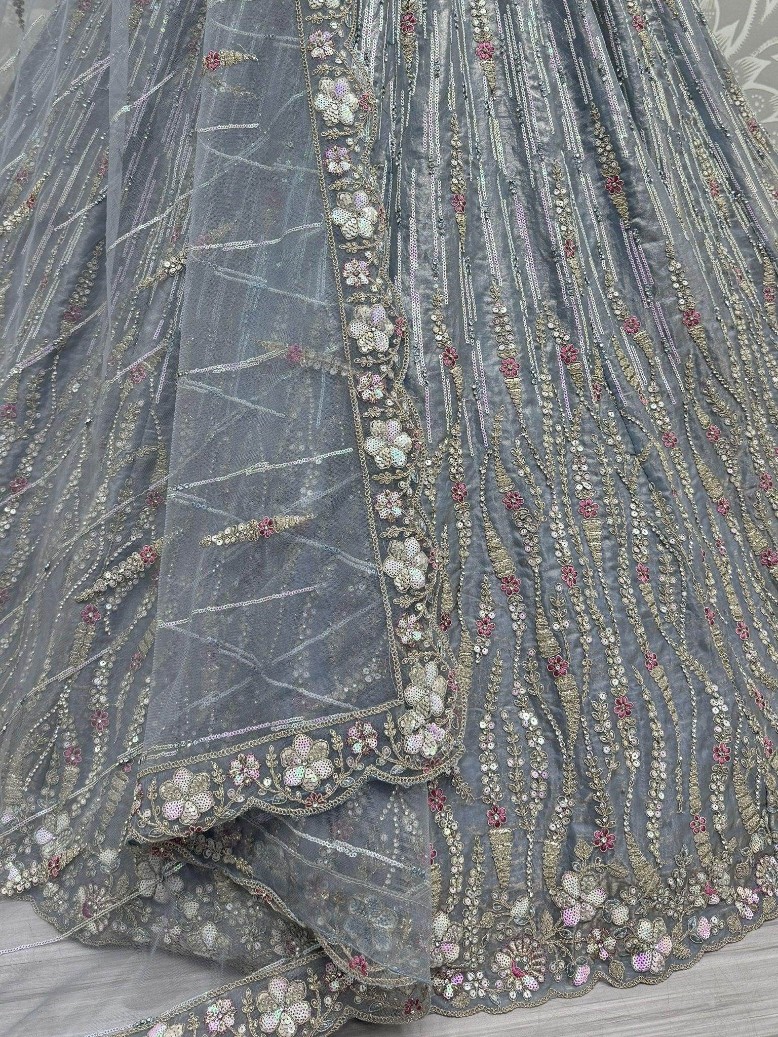 Adding to this ensemble is a powder blue dupatta crafted from softnet fabric. Its charming four-sided lace and delicate butta work contribute to the overall grace of the outfit. With a generous length of 2.5 meters, this dupatta provides the perfect finishing touch, making this lehenga choli set ideal for creating a show-stopping look at weddings, parties, and other celebratory gatherings. This ensemble not only resonates with traditional aesthetics but also empowers you to express your style with confidence.