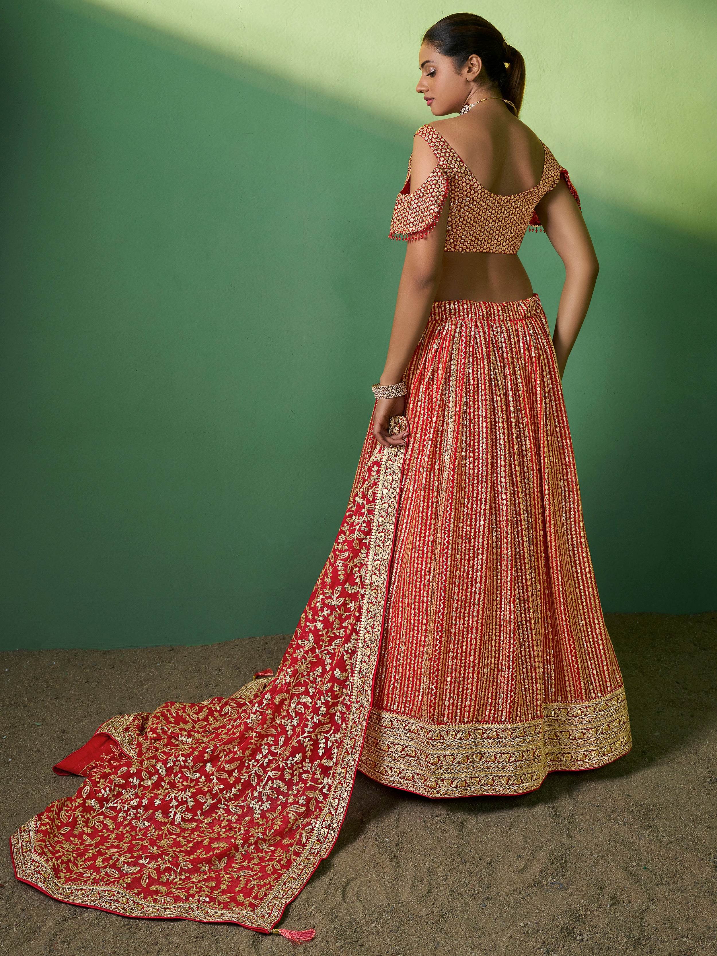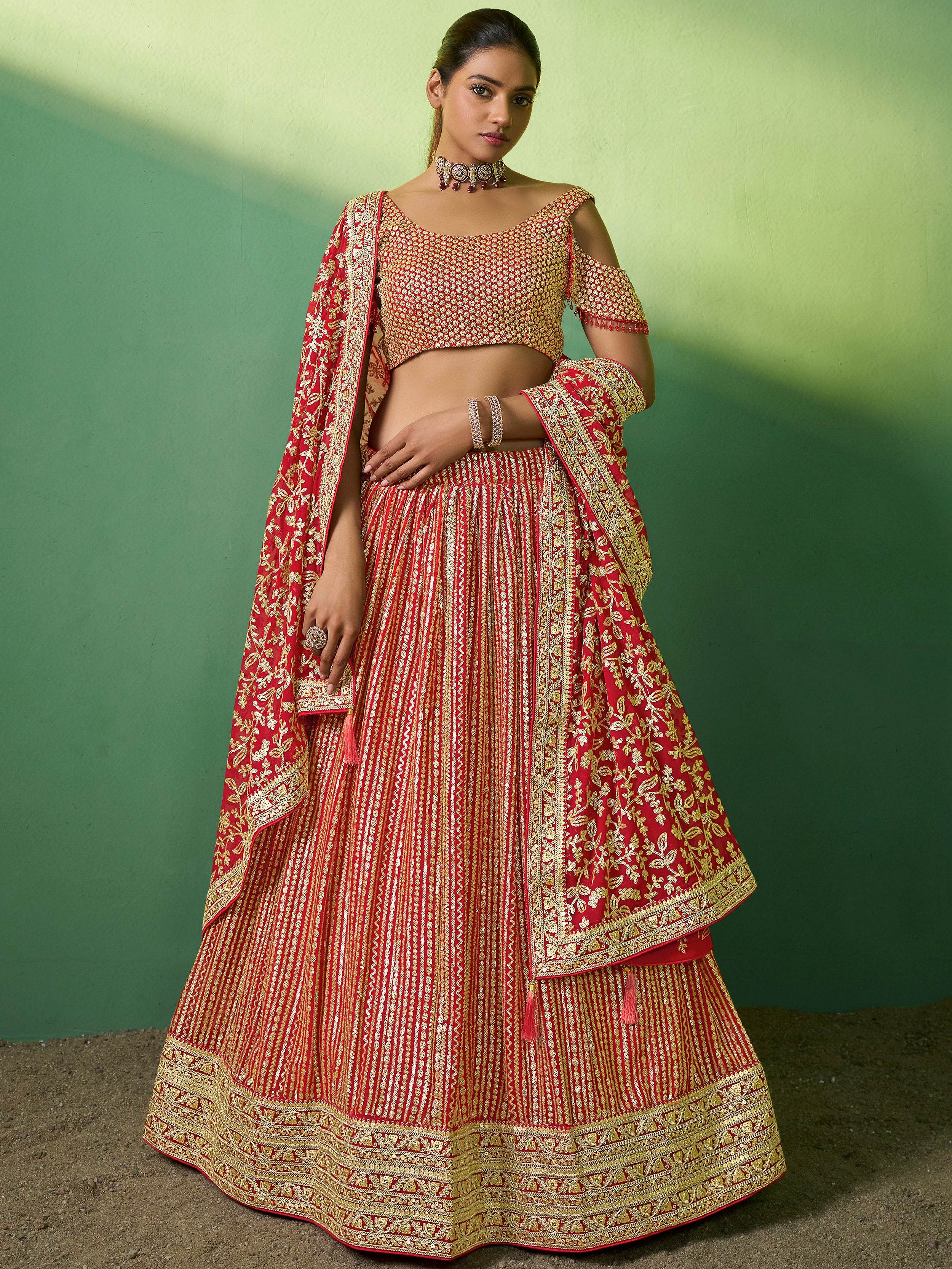 Introducing the beautiful red sequins georgette lehenga choli with net dupatta, the perfect attire for weddings, receptions, and engagements. Designed with intricate sequin and embroidery work, this red lehenga choli exudes elegance and style.