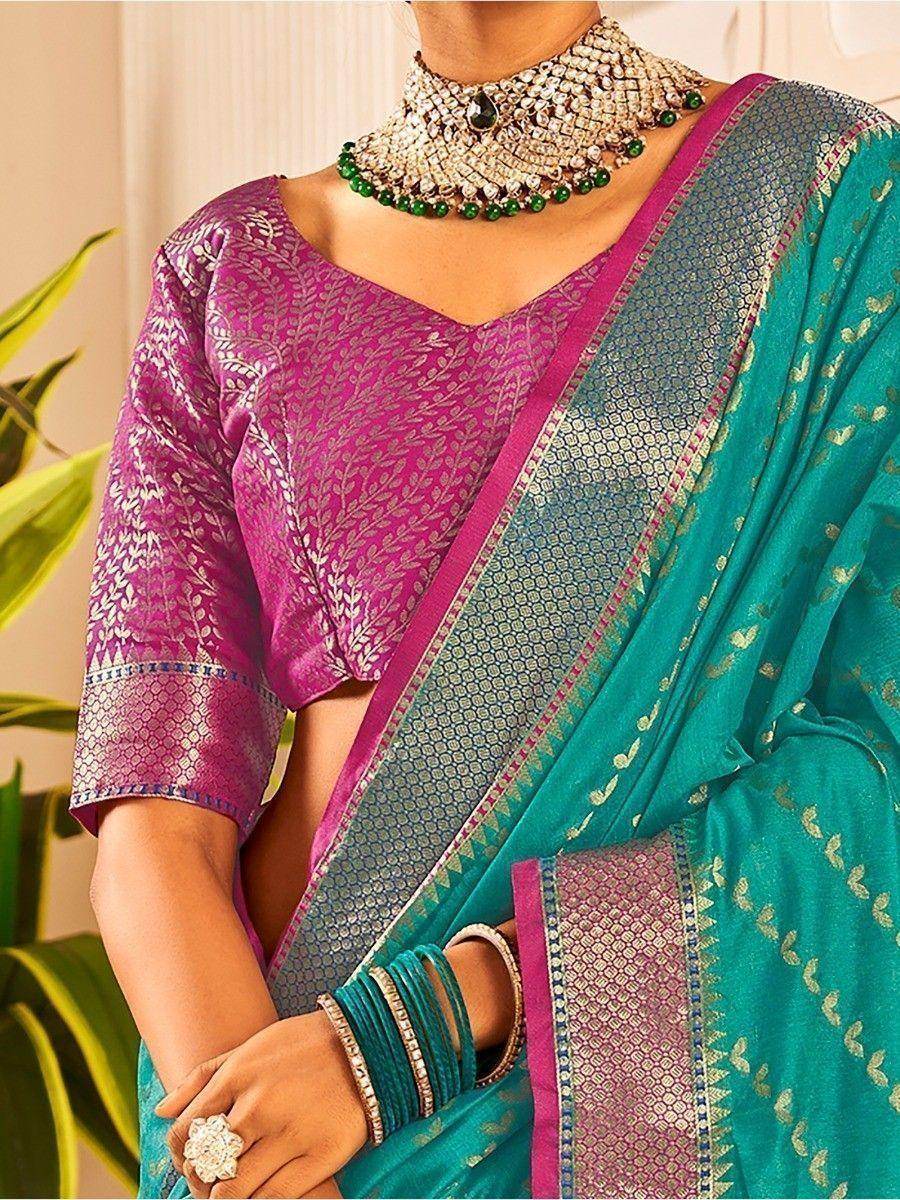 This saree is a favorite among popular designers, who choose banarasi silk sarees to add a touch of classiness to their collections. The sea green color and zari weaving work elevate the saree to new heights of elegance and sophistication.