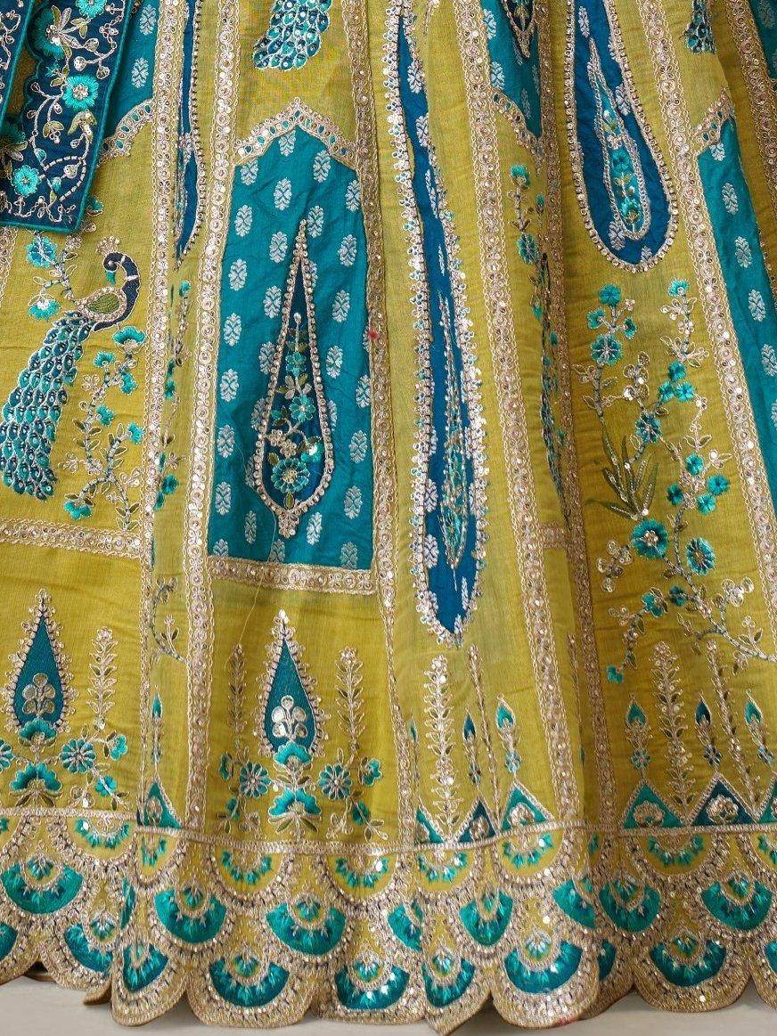 Make a grand entrance with our beautiful yellow Banarasi silk lehenga choli set, crafted to capture the spirit of festive elegance. The luxurious Banarasi silk fabric brings a rich and royal texture, while the vibrant yellow shade radiates warmth and joy, making it a perfect choice for wedding celebrations and bridesmaid looks. The outfit is designed to make you feel both traditional and glamorous at the same time.