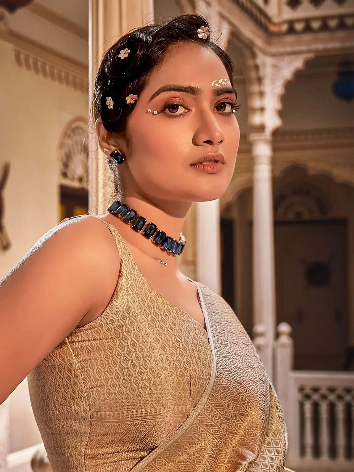 The beauty of a beige silk saree lies in its understated yet captivating appeal. It exudes a sense of sophistication and refinement, making it the perfect choice for a variety of occasions. Whether it's a festive celebration, a family gathering, or a formal event, this saree effortlessly commands attention and admiration.