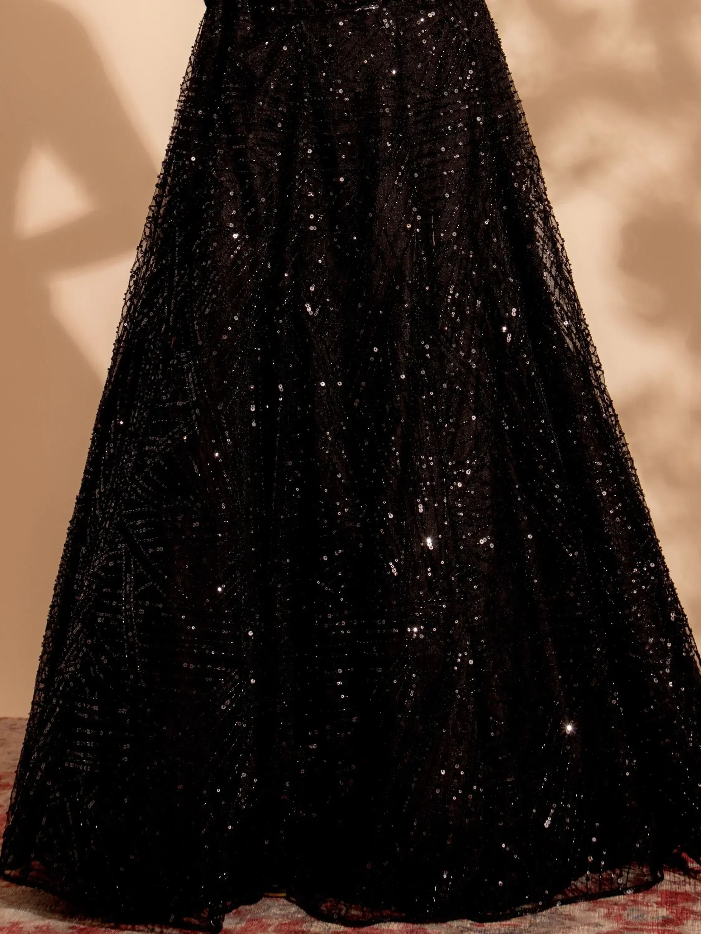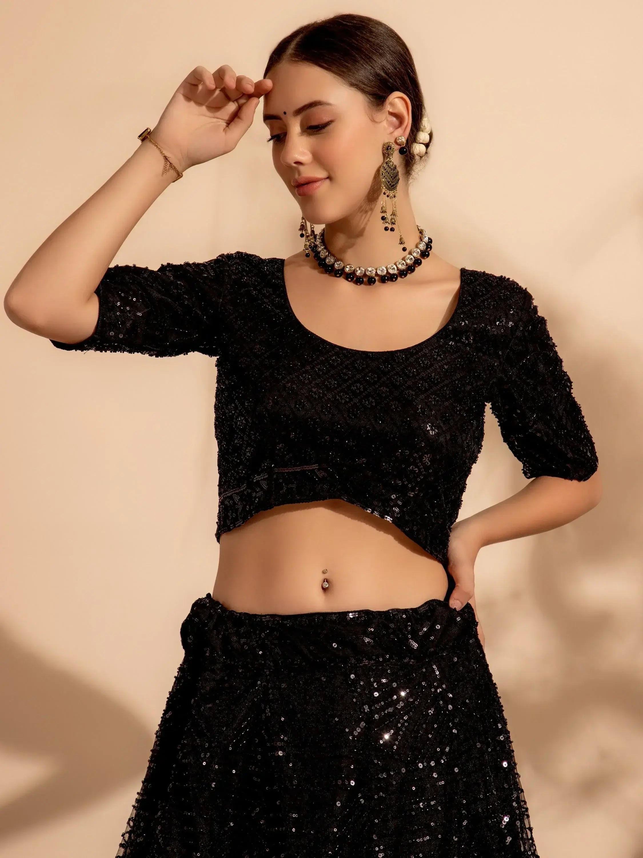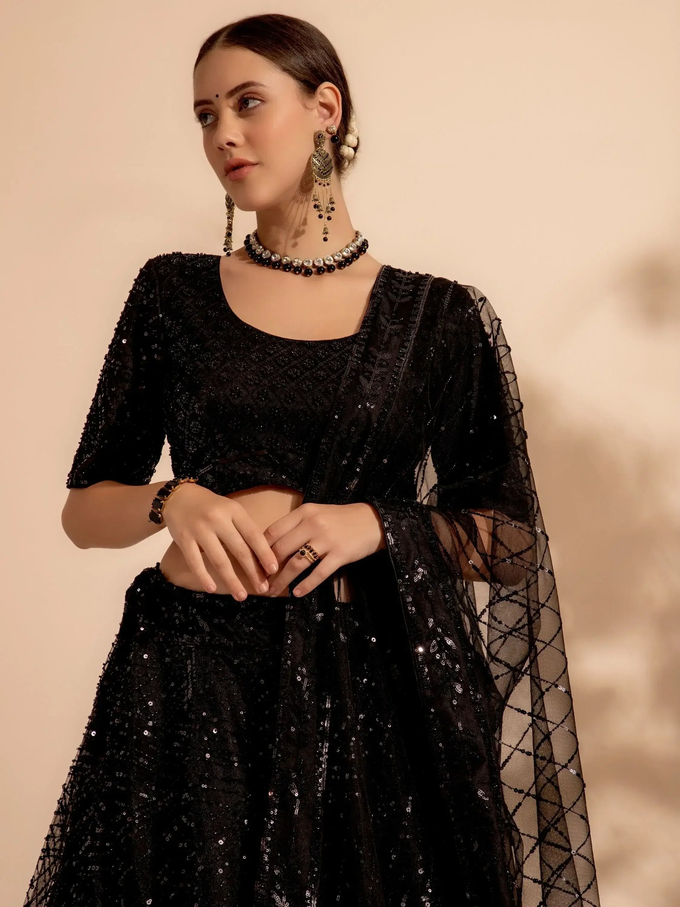 The "bewitching black sequins net reception wear lehenga choli" is a timeless and elegant choice for any special occasion. Whether you're attending a wedding, a reception, or a party, this stunning ensemble will make you feel like a true Bollywood diva. Order yours today and make a lasting impression wherever you go.