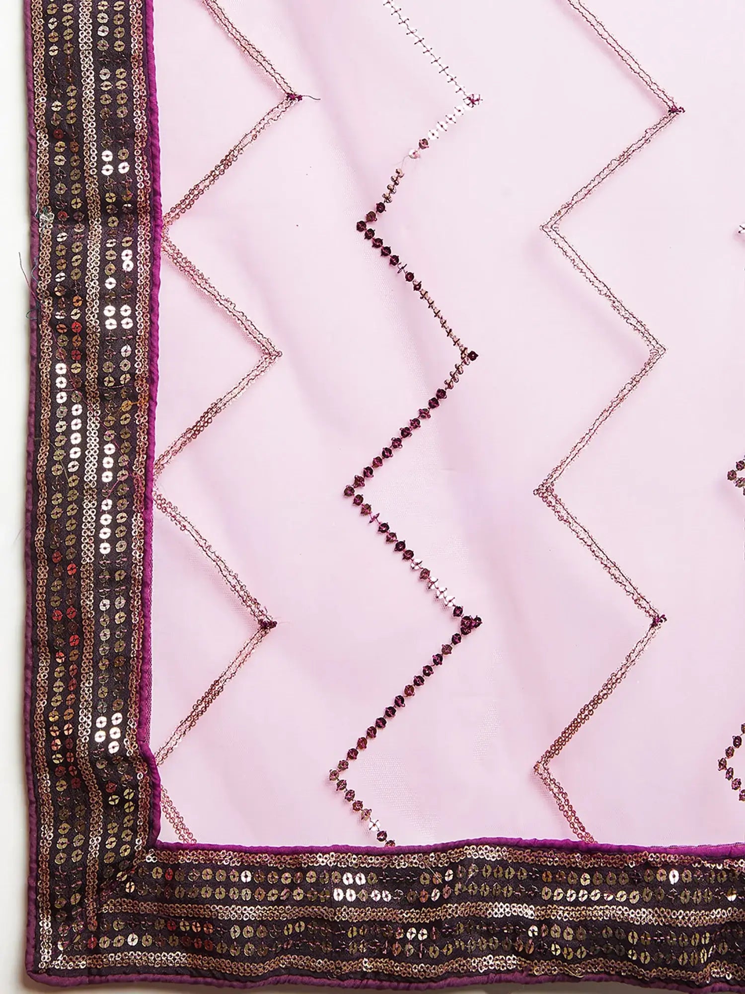 The choli, in a similar color, is embellished with art silk material and features sequin and zari embroidered work. It perfectly complements the lehenga, creating a cohesive and stylish look. To complete the ensemble, a pink-colored art silk dupatta is included, designed with sequin and zari embroidered work. The dupatta adds a pop of color and adds to the overall charm of the outfit.