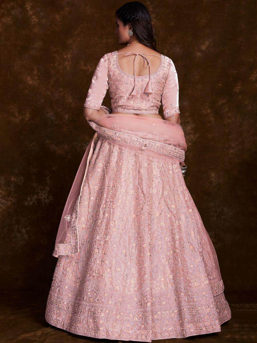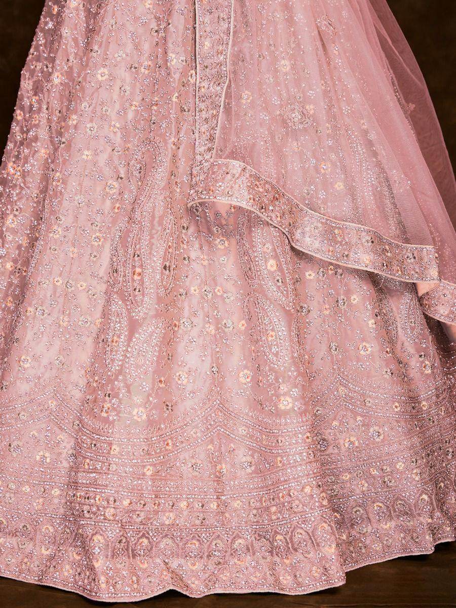 To complete the look, this lehenga choli comes with a matching peach-colored soft net dupatta. The dupatta adds an additional touch of grace and elegance, making it the perfect accessory to conquer any event in style.