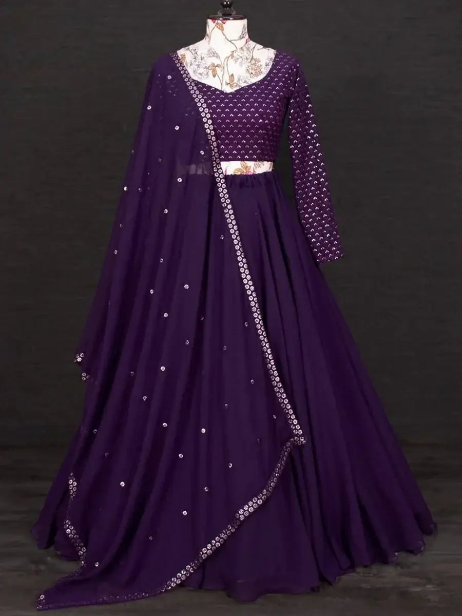 Create your occasional look more impressive enrobing this stunning purple color lehenga made of georgette material with plain fabric and drawstring.