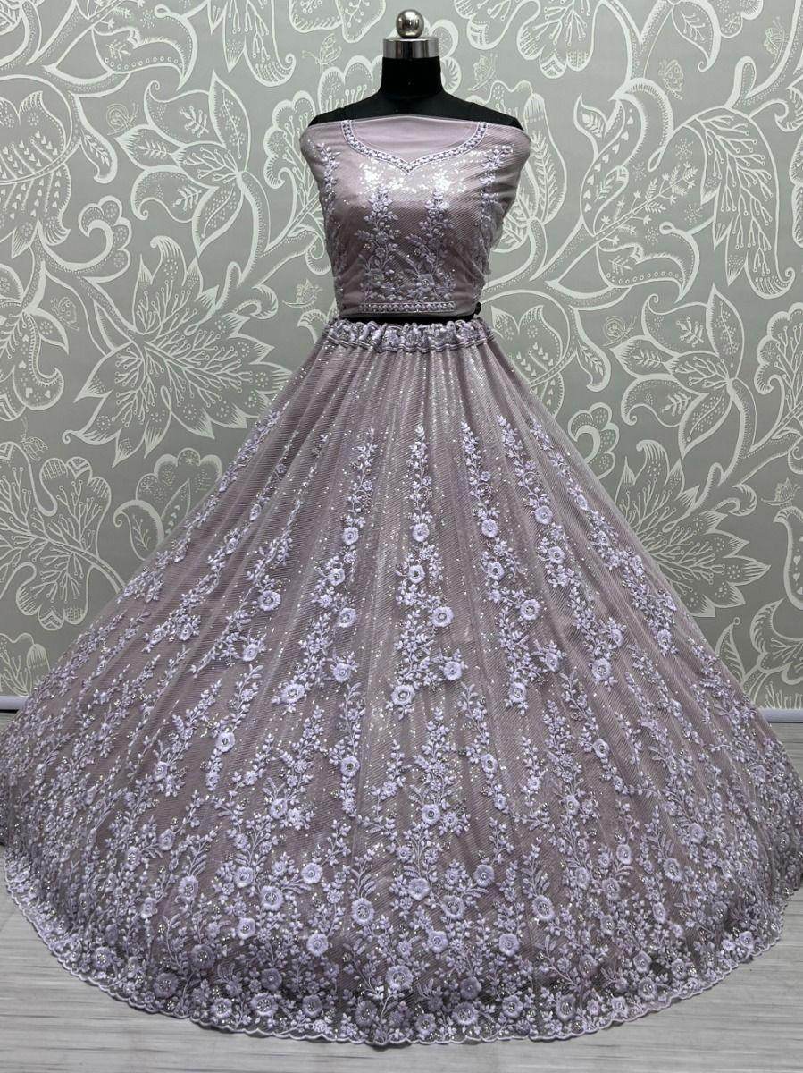 Design and pattern could be at the rise of your beauty after you dress in this lavender color sequin lehenga choli. This lavender color lehenga is made of bridal net material embellished with zircon diamond work, thread embroidery, and background sequin work and is also attached with a standard cancan & canvas.