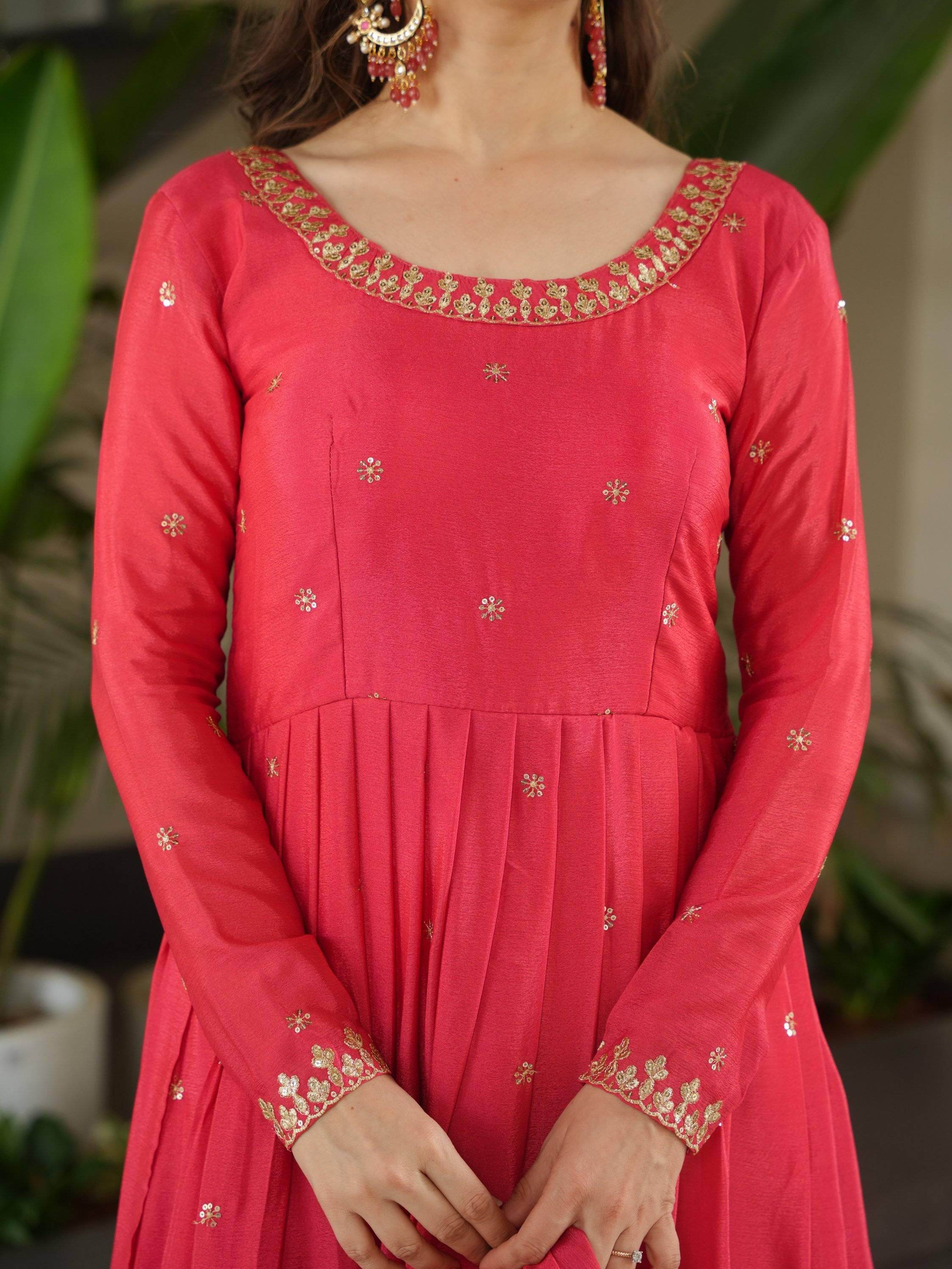 This beautiful gown is fully stitched and available in sizes M to XXL, offering a comfortable and flattering fit. With a 56-inch length and a generous 3.5-meter flair, it delivers a dreamy and flowy silhouette ideal for any celebration.