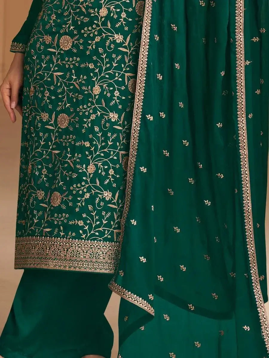 Don't miss out on the opportunity to own this stunning ensemble. Shop now and experience the charm of green with the Charm of Green Zari Work Silk Satin Festival Salwar Suit & Dupatta from Ethnic Plus.