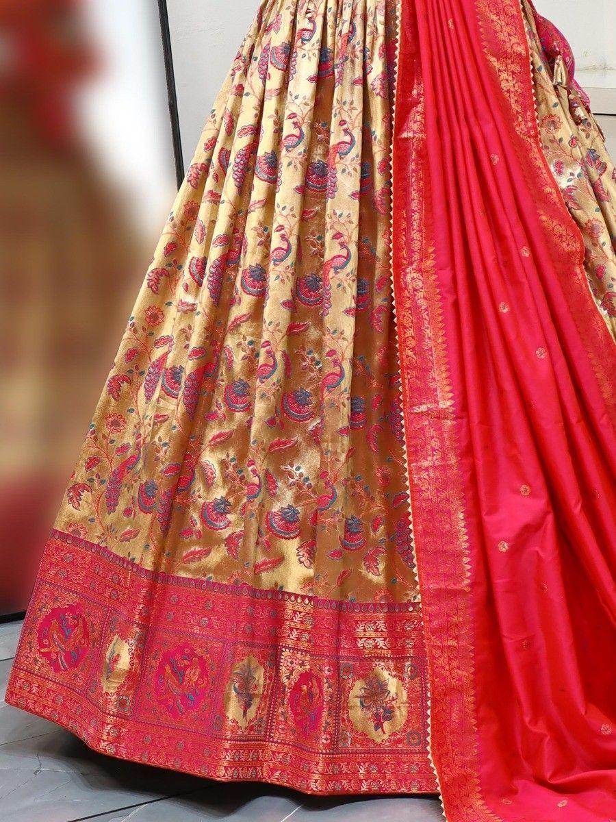 This charming beige and pink paithani silk lehenga choli is not only visually appealing but also made with high attention to detail and quality. The craftsmanship and fine weaving work make it a valuable addition to your wardrobe.