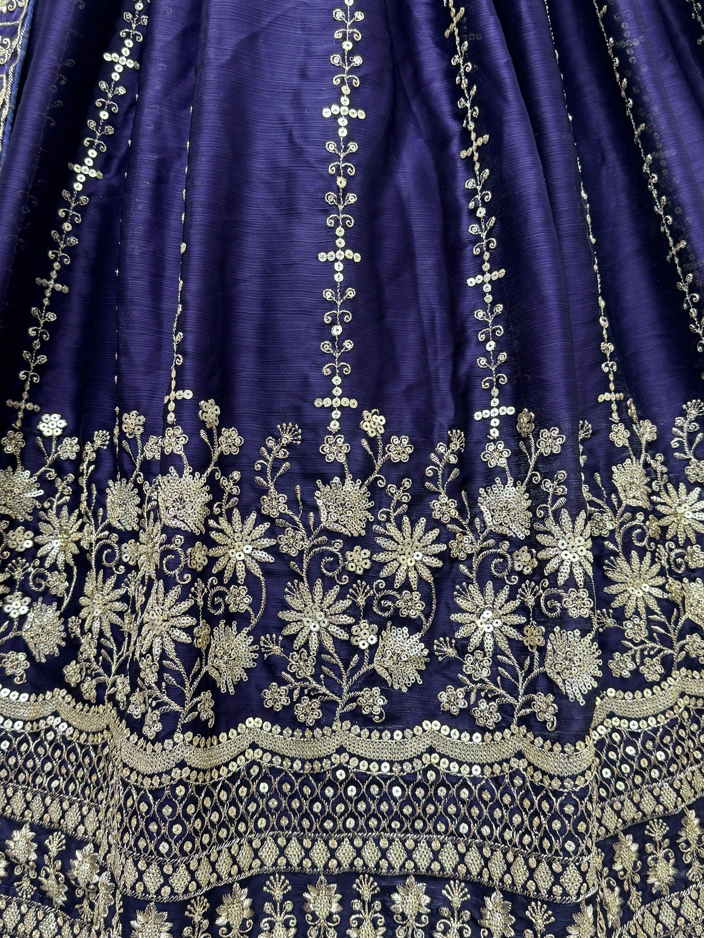 This charming blue multi-thread work chiffon wedding lehenga choli is sure to turn heads and make you the center of attention at any event. The craftsmanship and attention to detail in this lehenga set are unmatched, showcasing your rich sense of style and fashion-forward thinking. Pair it with traditional jewelry and accessories to complete the look and feel like a princess on your special day.