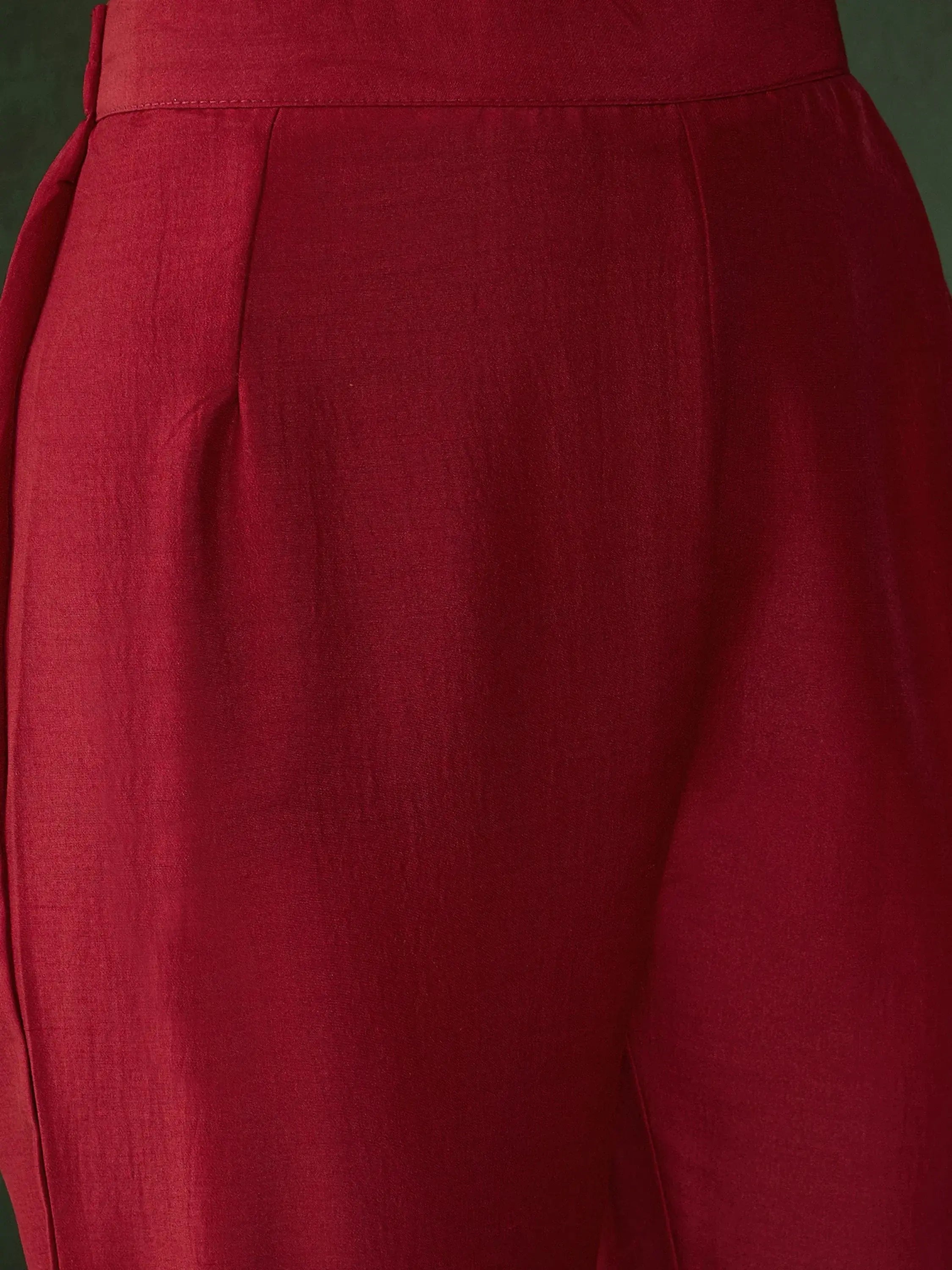Designed to blend tradition with contemporary flair, this maroon pant suit from Ethnic Plus is a must-have for your occasion wear collection. Embrace its charm and enjoy a sophisticated appearance at your next event.