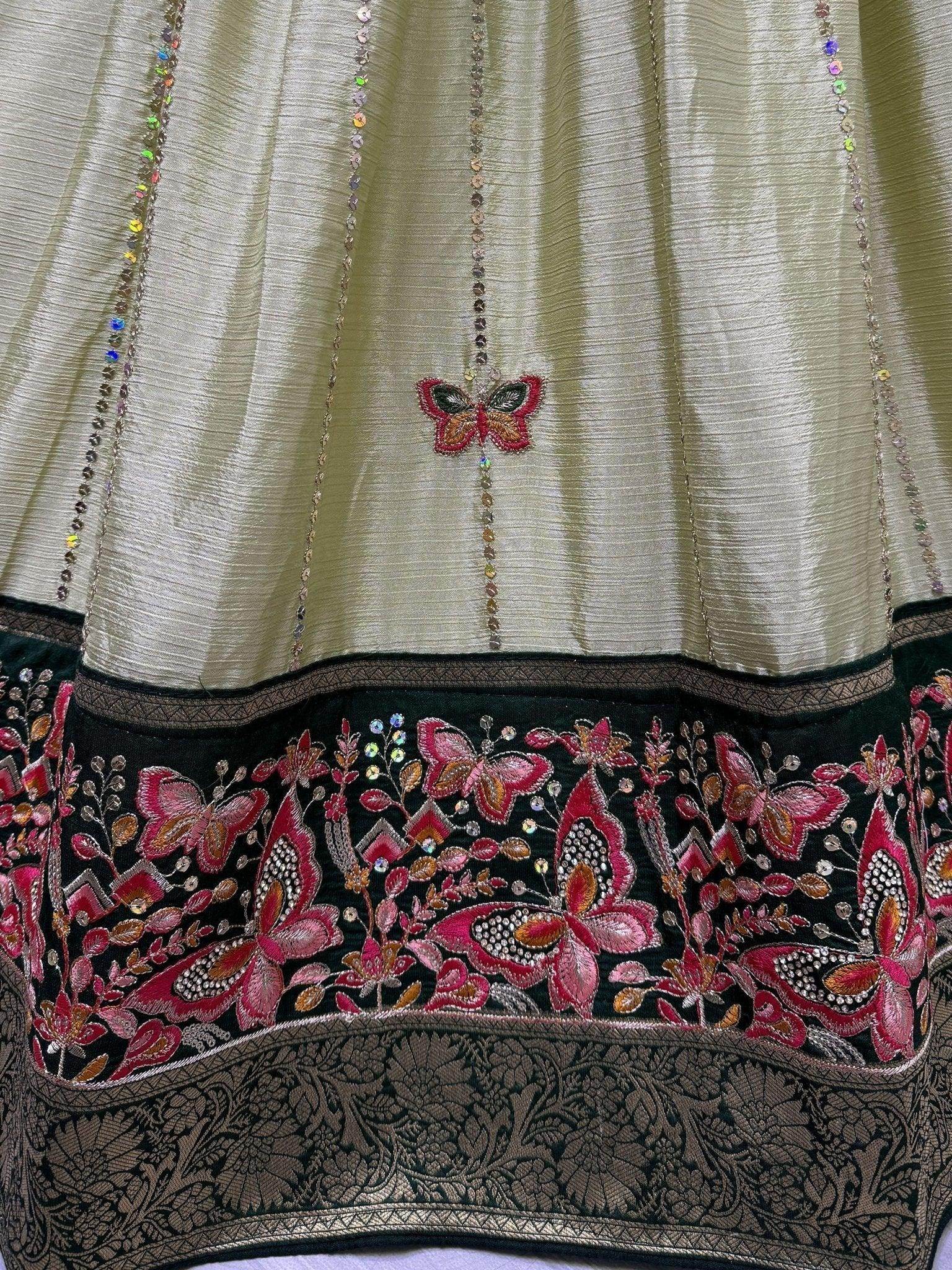 The beautifully designed pista green color lehenga choli is a splendid choice for any special occasion, exuding elegance and charm. Crafted from luxurious gadhwal silk, this ensemble offers a perfect blend of traditional craftsmanship and modern flair, ensuring you stand out on your special day.