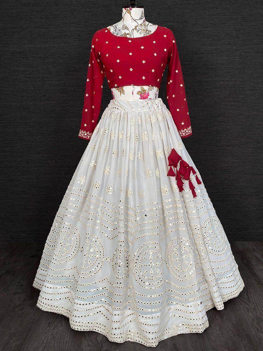 This beautiful white-colored lehenga is made for special occasions or festivals, where you can get a lot of praise from the audience.
