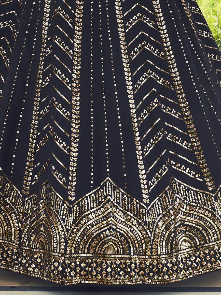 Impressive Black Georgette Mirror Work Navratri Wear Lehenga Choli