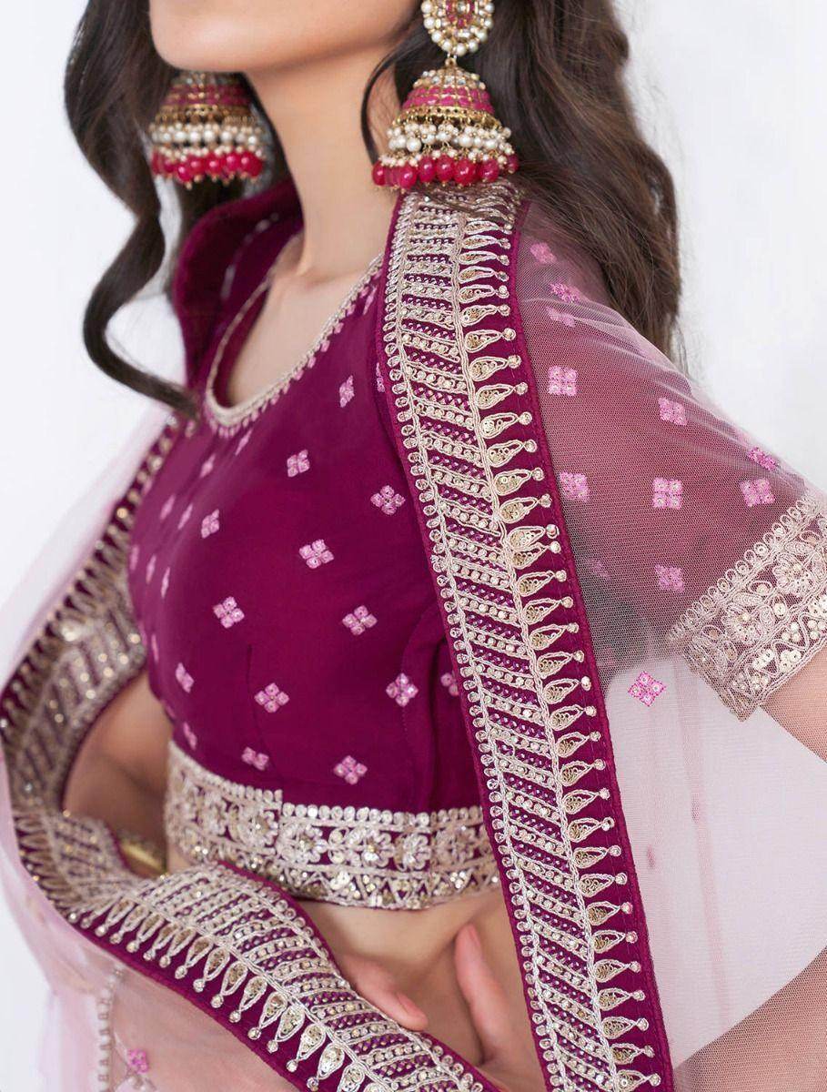 An elegant lehenga choli makes you look aesthetically amazing, irrespective of your age. This striking piece in shades of rani is crafted in a net to make it lightweight and give it the perfect design. Enhanced with sumptuous work in Thread, cording, sequins, and zarkan work.