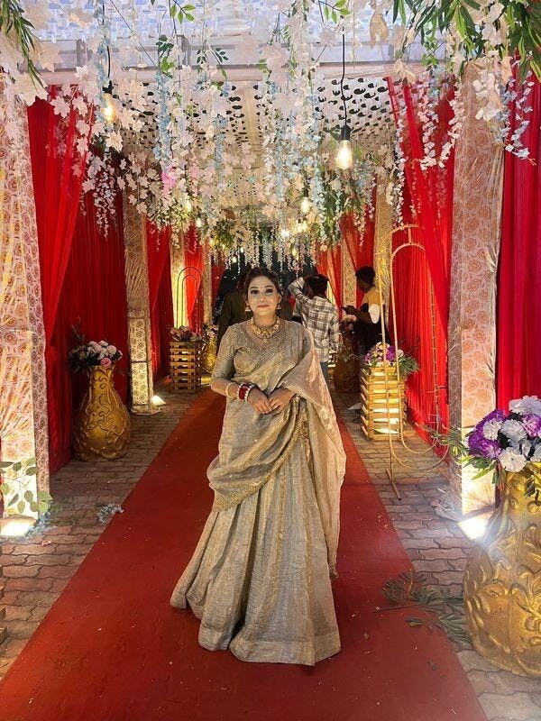 Step into elegance with our enchanting golden gold crush organza lehenga, designed to make a stunning statement at weddings and special occasions. Crafted from rich organza fabric, the lehenga features a luxurious golden hue with a soft crushed texture that gives it a graceful and regal appearance. Its plain design brings timeless charm, allowing the fabric's natural sheen to stand out beautifully.