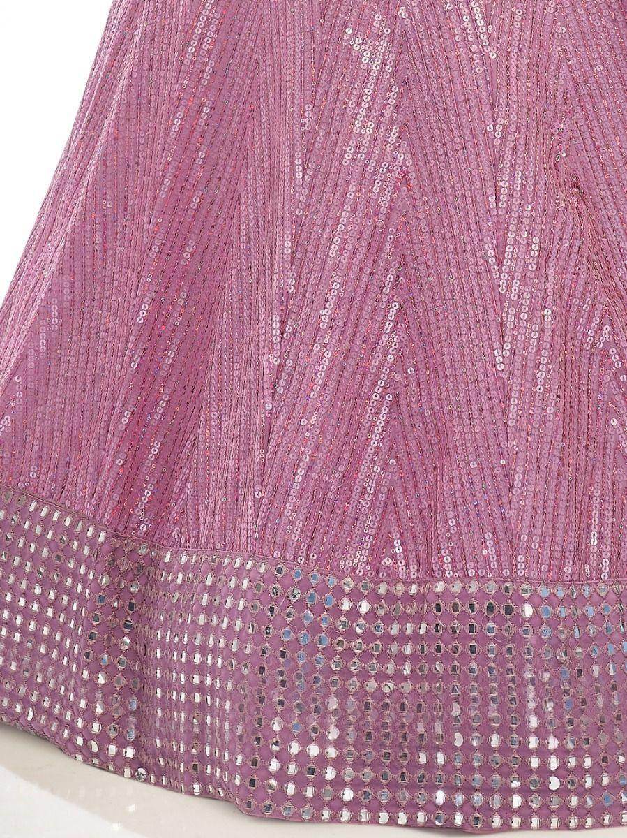 Add a vibrant burst of color to your wardrobe with this purple color lehenga crafted with georgette fabric designed with thread embroidery, sequins work, and paper mirror work.