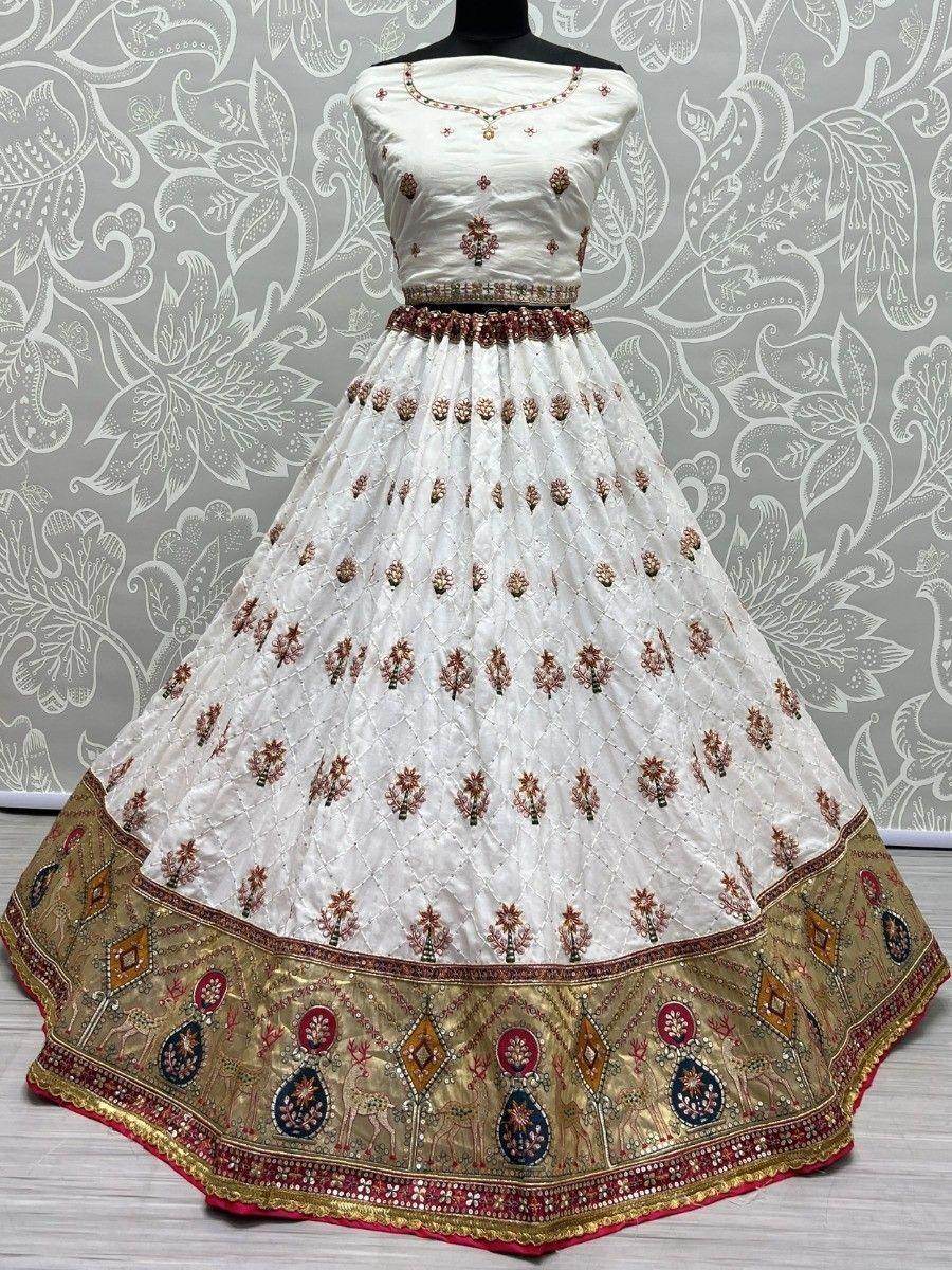 Introducing the enchanting white sequins silk traditional lehenga choli with dupatta from Ethnic Plus. This beautiful ensemble is crafted with love and pride, designed especially for the beautiful you. Made from high-quality gadhawal silk material, this white lehenga features fancy embroidered work, sequin work, zari work, and zircon work, adding a touch of elegance and glamour to your attire.