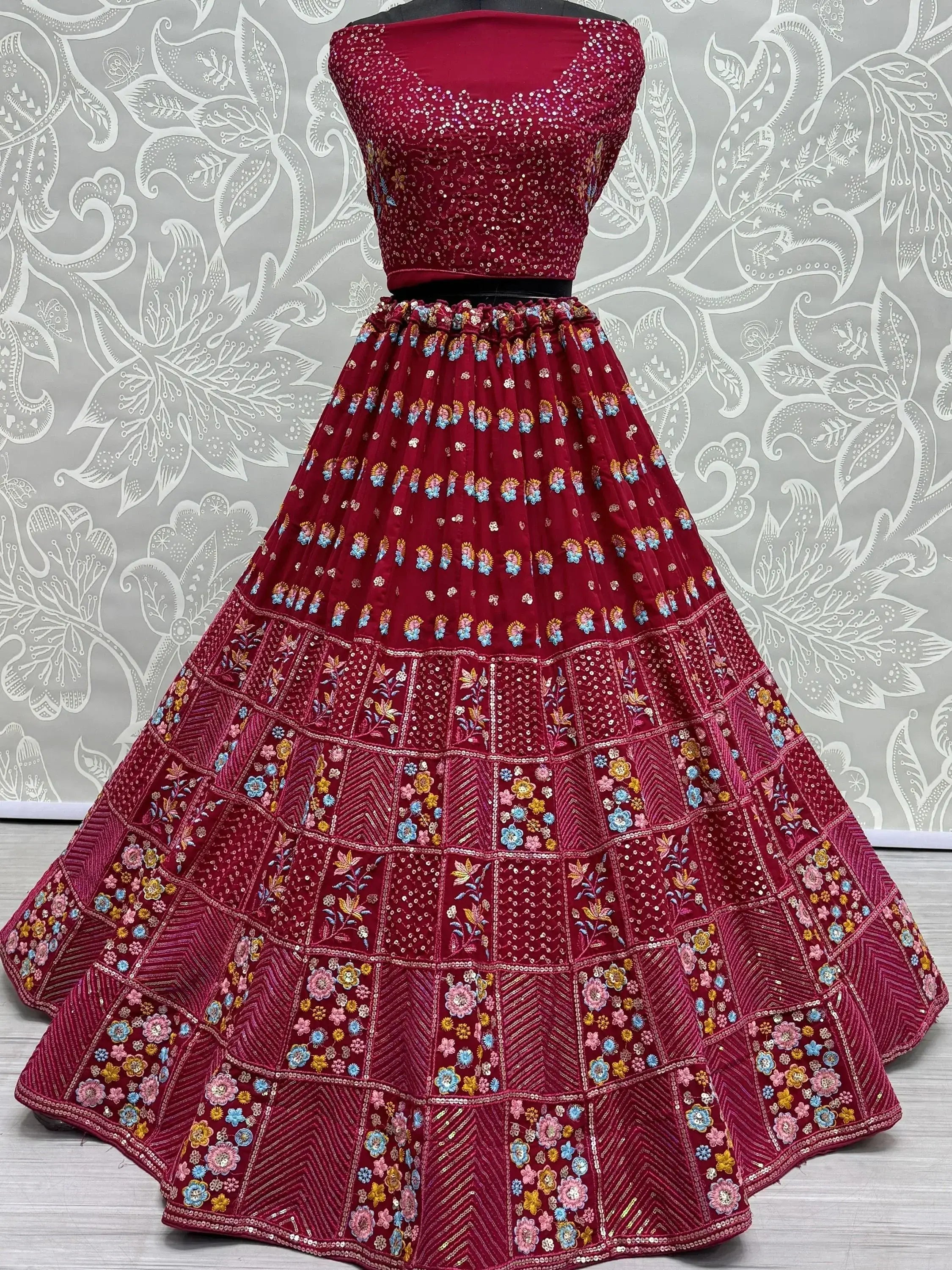 The lehenga is semi-stitched up to 42 inches and comes with an un-stitched 0.9-meter choli material, while the dupatta is 2.5 meters long.