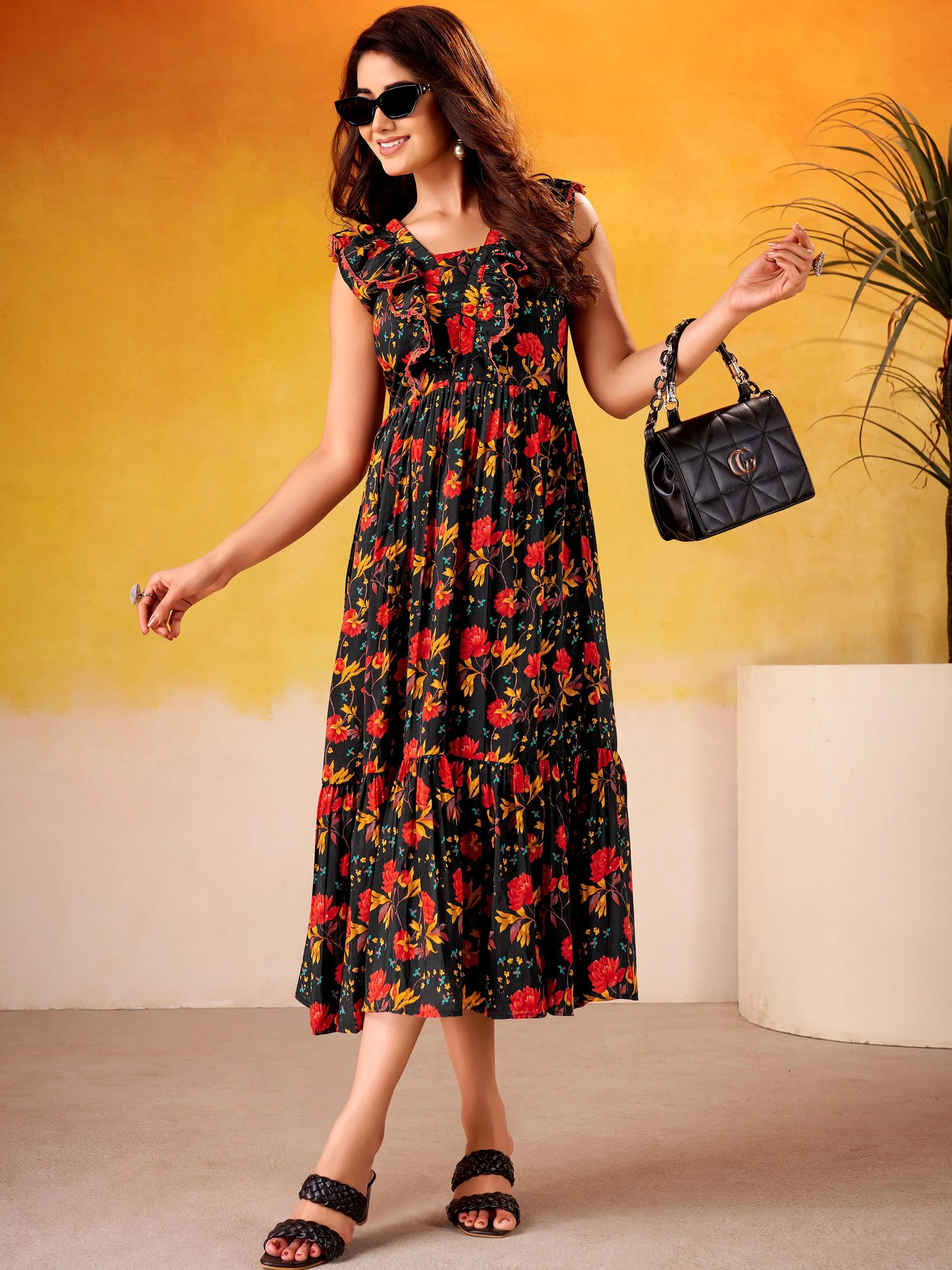 This frock is ideal for casual outings, brunch dates, parties, and summer gatherings. Its floral charm and lightweight fabric make it perfect for day wear and stylish evening looks.