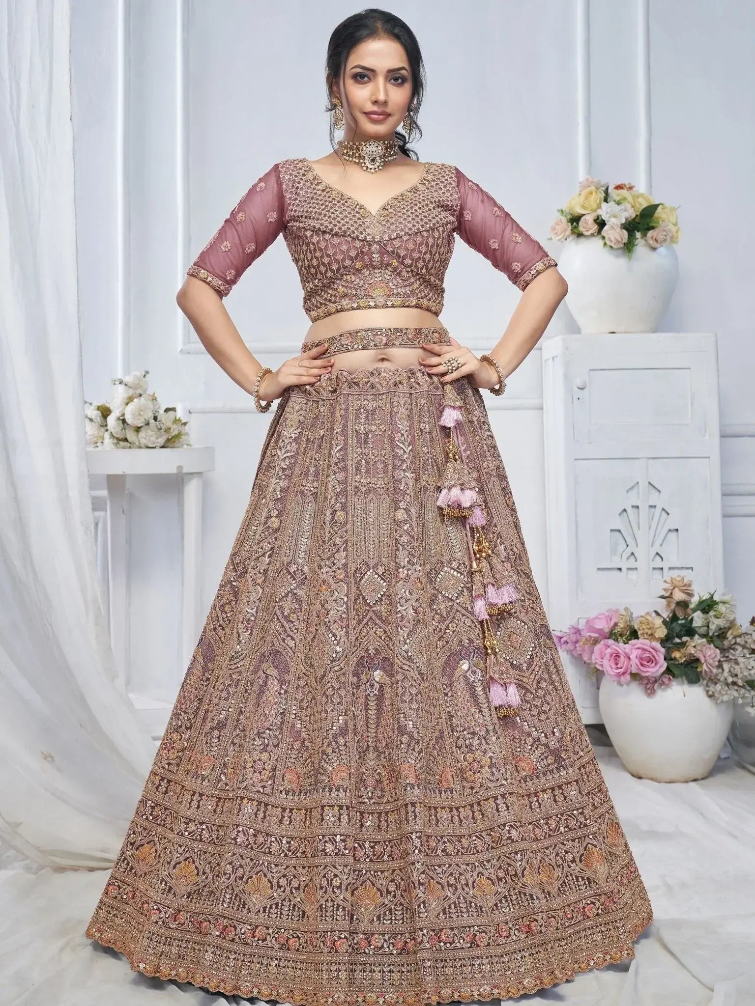 Pista Green Dori Thread Embroidered Net Wedding Lehenga Choli