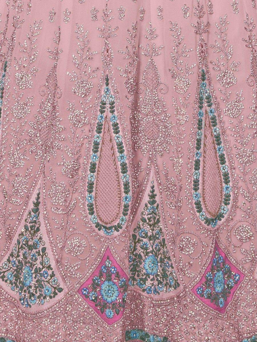 Introducing the fabulous pink floral embroidered georgette wedding lehenga choli, a stunning addition to any stylish woman's wardrobe. This designer lehenga choli is made from high-quality georgette material and features exquisite sequin and floral embroidered work. With its beautiful pink color, this lehenga choli is perfect for weddings, cocktail parties, receptions, and engagements.