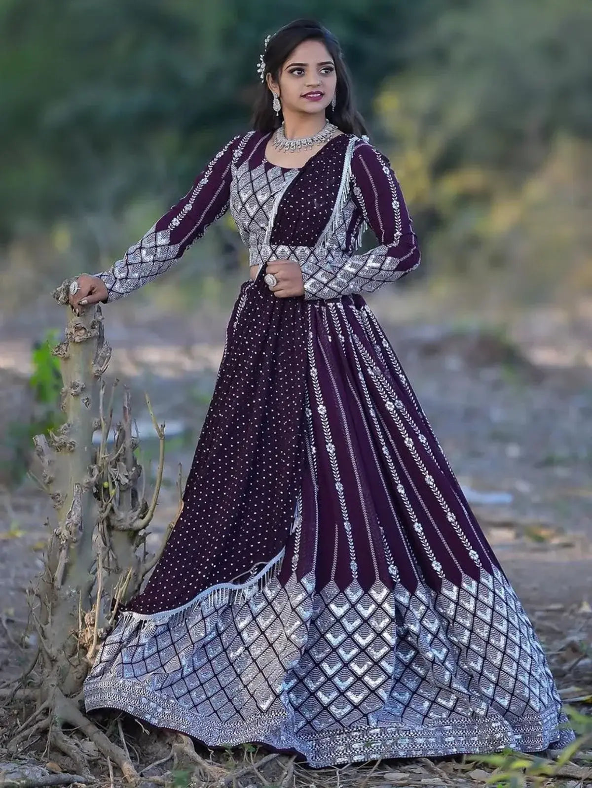 Don't miss out on the opportunity to own this exquisite purple sequin georgette designer lehenga choli with a dupatta. It is a must-have for anyone who loves to embrace traditional attire with a modern twist. Order now and elevate your ethnic wear collection with this timeless piece.