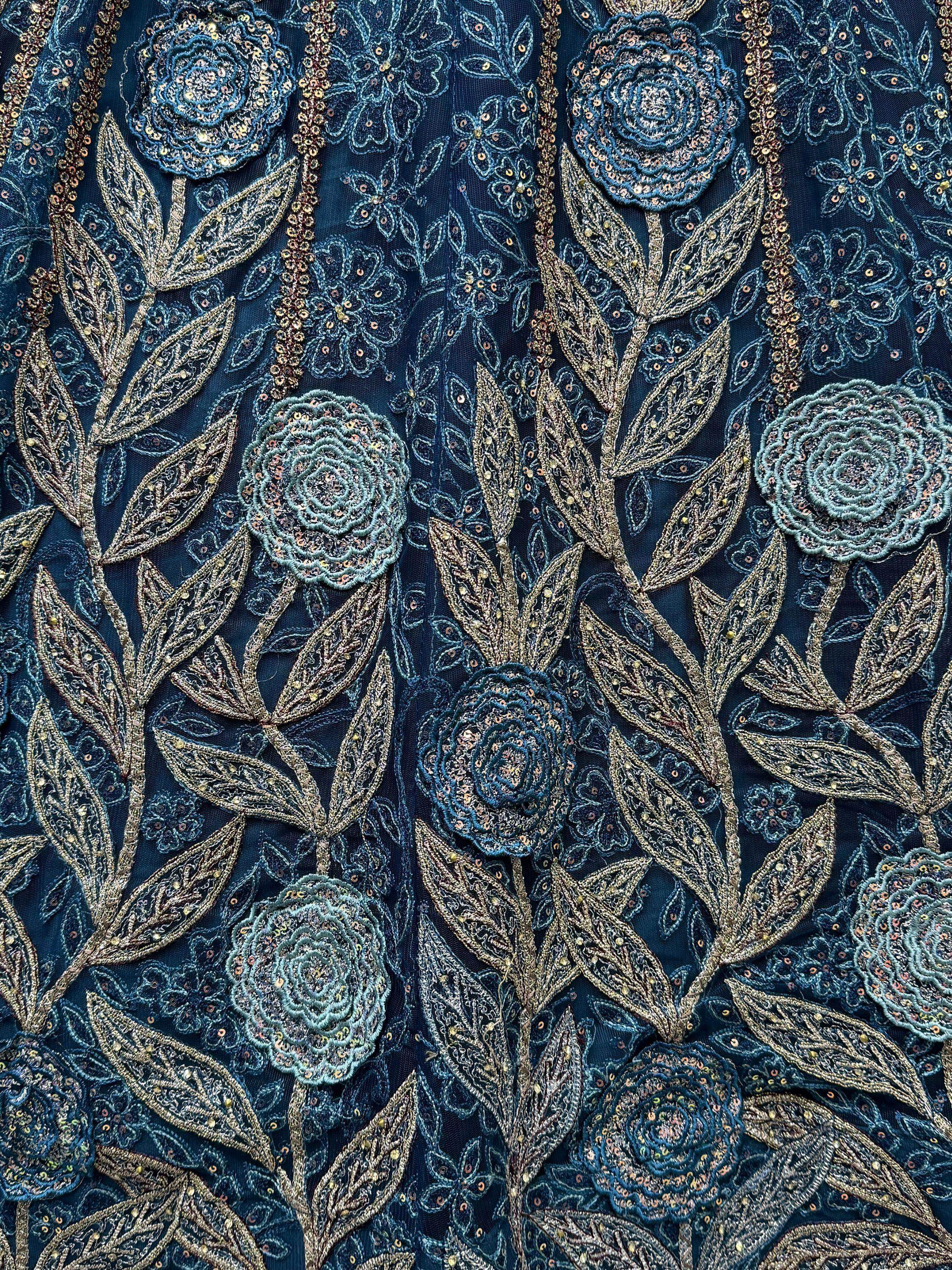Elevate your bridesmaid look with our stunning "fascinating blue embroidered net engagement wear lehenga choli." This exquisite ensemble features a beautiful blue color net material lehenga with intricate zari embroidered work, multi-thread fancy flower work, sequin work, and dori work. The matching choli also boasts the same elegant detailing, while the net dupatta is adorned with four sides of beautiful lace work and butta work all over.