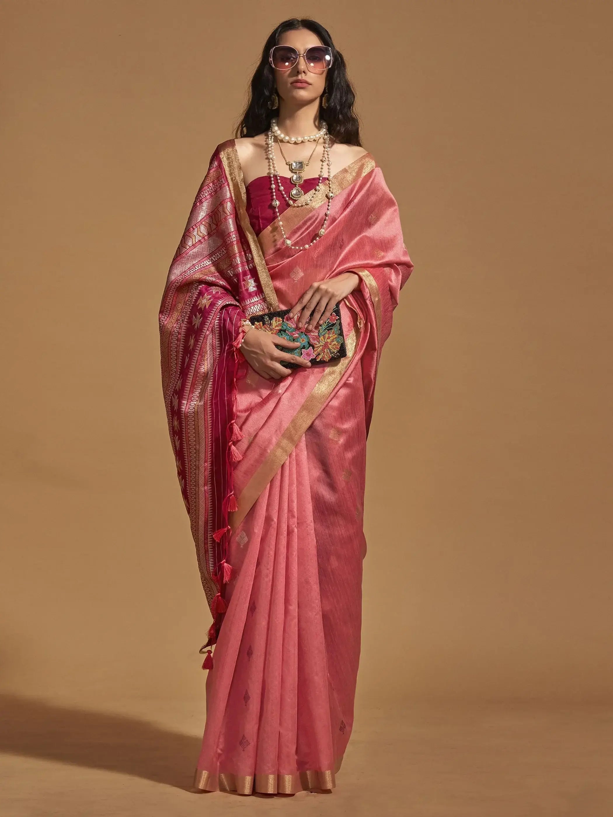 This glamorous saree include its lightweight design, making it comfortable to wear all day long. The high-quality silk fabric drapes beautifully, accentuating your features and flattering your figure. The zari work adds a touch of shimmer and shine, making you feel like royalty as you step out in style.