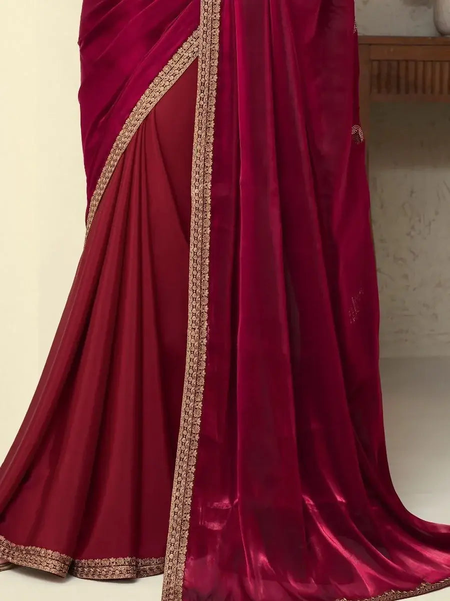 However, this saree is more than just a piece of clothing; it is a work of art that is designed to make you look and feel special. Its combination of luxurious silk, meticulous sequin work, and exquisite draping make it a unique and captivating piece that will leave a lasting impression.Shop now and indulge in the enchanting allure of our Glamorous Pink Sequin Work Silk Reception Wear Saree With Blouse. Step into the spotlight, embrace your elegance, and experience the essence of true luxury.